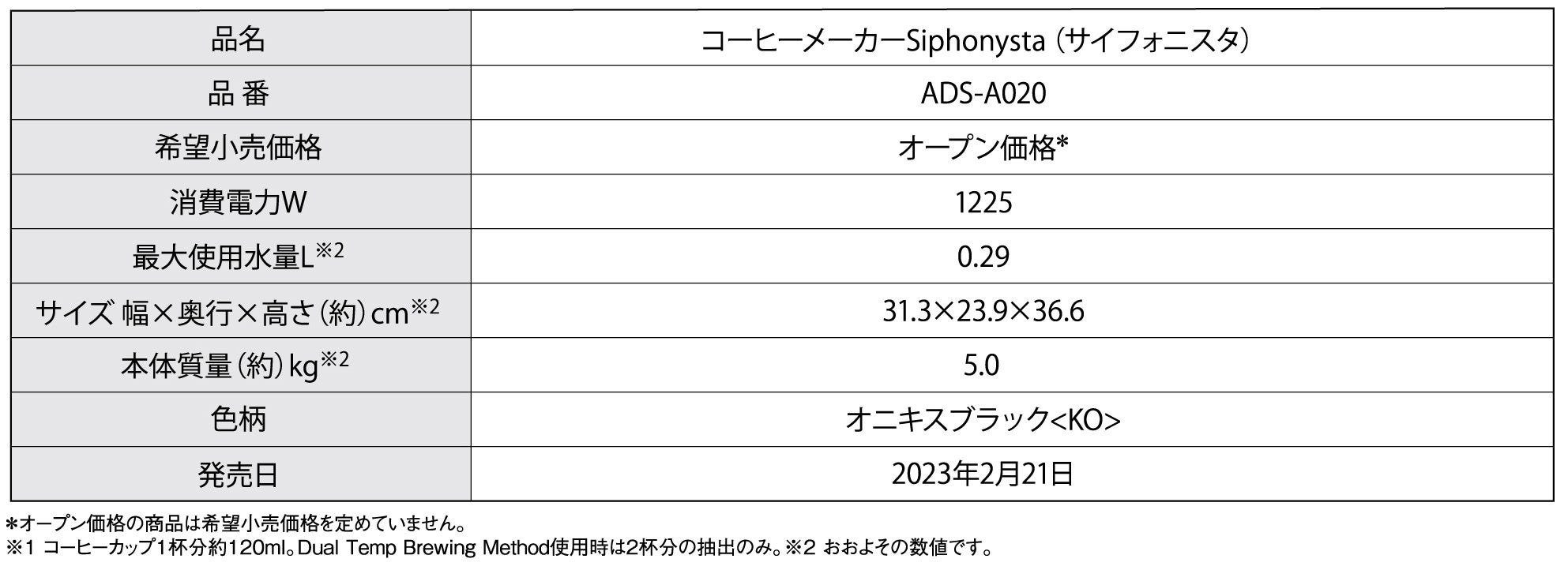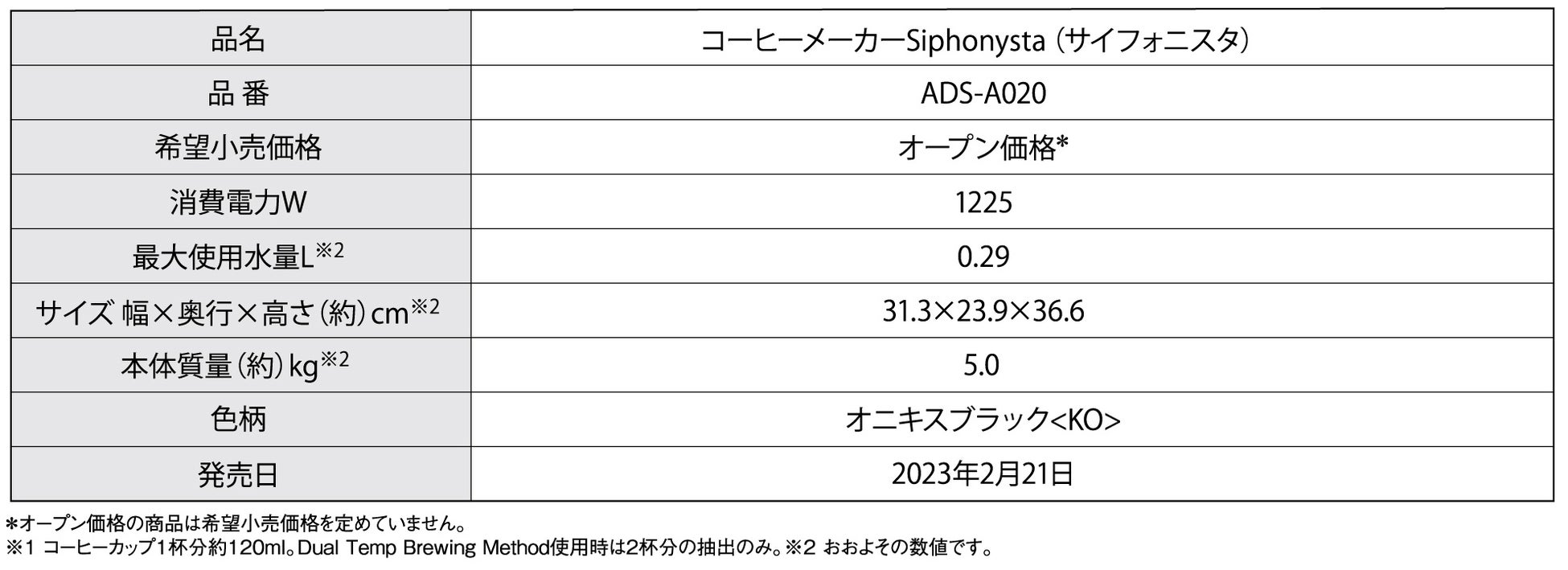 タイガー魔法瓶、高級コーヒーメーカー市場に参入 自動サイフォン式コーヒー抽出システム搭載コーヒーメーカー「Siphonysta(サイフォニスタ)」ADS-A020 2023年2月21日発売