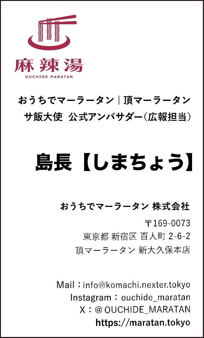 島長【しまちょう】 が #おうちでマーラータン|頂マーラータン公式アンバサダー|サ飯アンバサダーに就任 (広報担当) @OUCHIDE_MARATAN 元祖和製麻辣湯