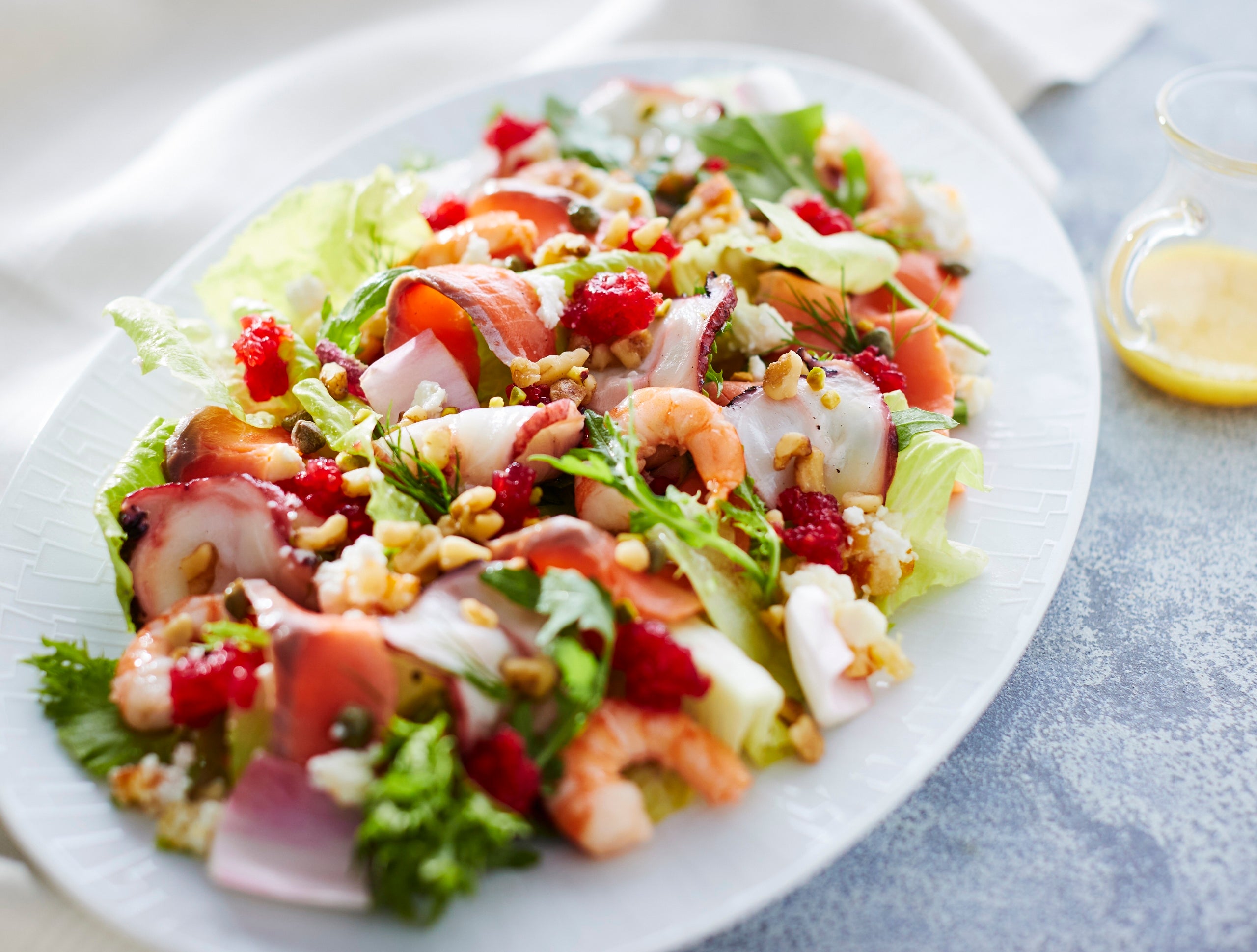 葉野菜/魚介のマリネ 210g/フランボワーズジュレ/リコッタチーズ&オレンジ/クルミ&ピスタチオ/オレンジとレモンのドレッシング