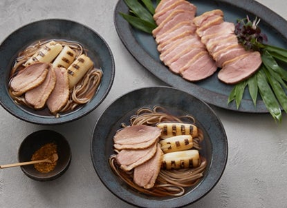 合鴨ロースト 140g/焼き葱/そば100g 2P/そばつゆ 2P/柚子七味 2P