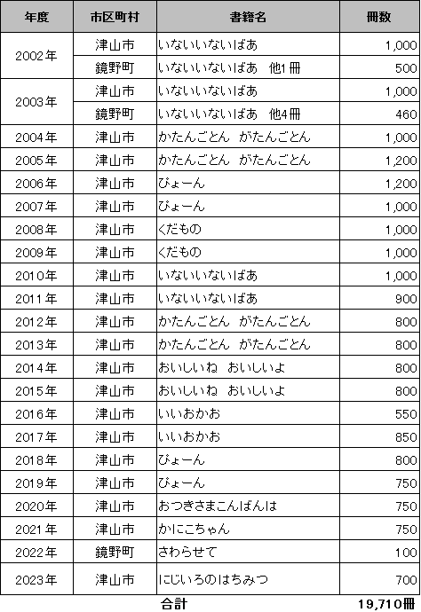 当活動は2002年から支援を開始し、2022年までで合計19,710冊の絵本を寄贈しています。