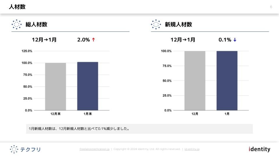 1月新規人材数は、12月新規人材数と比べて0.1%減少しました。