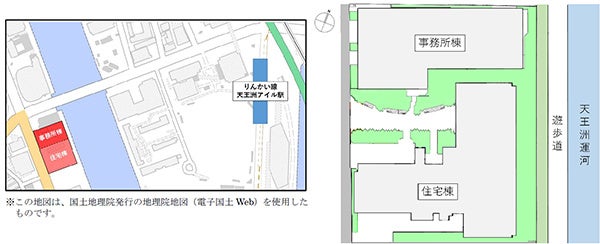 また、一団地認定(※)を取得した上で、同一敷地内に新本社ビルと分譲マンションの2棟を建設し、各棟の独立性を確保することで、セキュリティやプライバシー性を向上させるなど、長期間利用される各棟の資産価値の維持・向上を企図した計画としています。