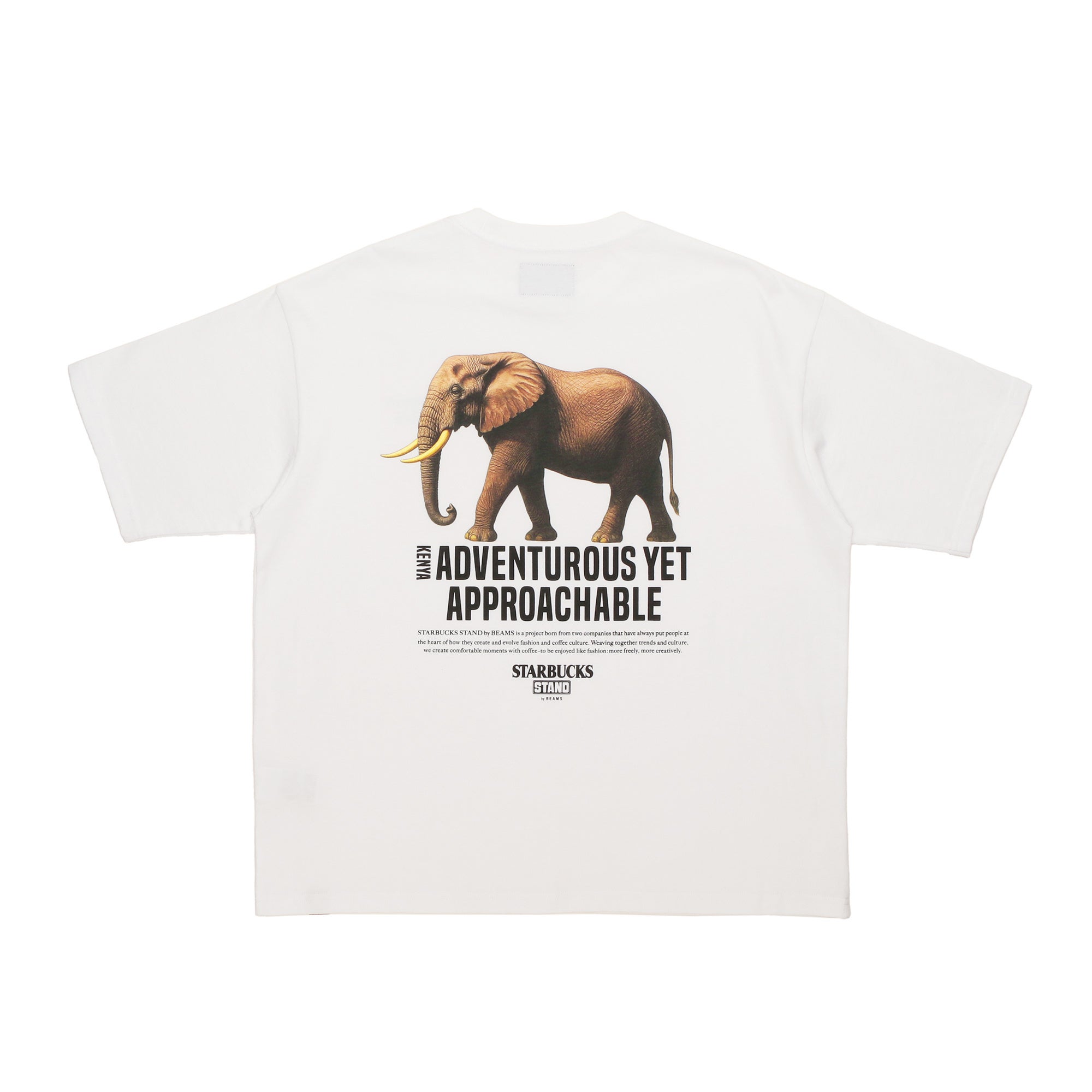 グラフィック半袖Tシャツには、現地に生息する動物たち「ゾウ、シマウマ、ライオン」を背中に大きくプリントしています。シルエットは、肩幅と身幅にゆとりを持たせ、ネックはできるだけ身体に沿わせる様に設定しメリハリのあるシルエットに仕上げました。ユニセックスでも着用できるようXS〜XLまでの5サイズ展開しています。素材は、14番手の糸で織られたUSAコットン天竺を採用。空紡糸の為、シャリみのあるドライタッチと季節を問わない程よい肉感が特徴です。裾にはオリジナルのピスネームでアクセントを入れています。