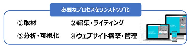 企業のサステナビリティに関する取り組みを発信するための、特設ウェブサイトを構築するSX特化型サービスです。様々な社会問題から、働く会社も、住んでいる地球も、持続可能性が大切と考える世代が増えており、企業のSDGsへの取り組みも、具体的な貢献や姿勢は、外部からは見えづらく、若い世代や世間に向けてSDGsの取り組みを効果的に伝える術の必要性が増しています。