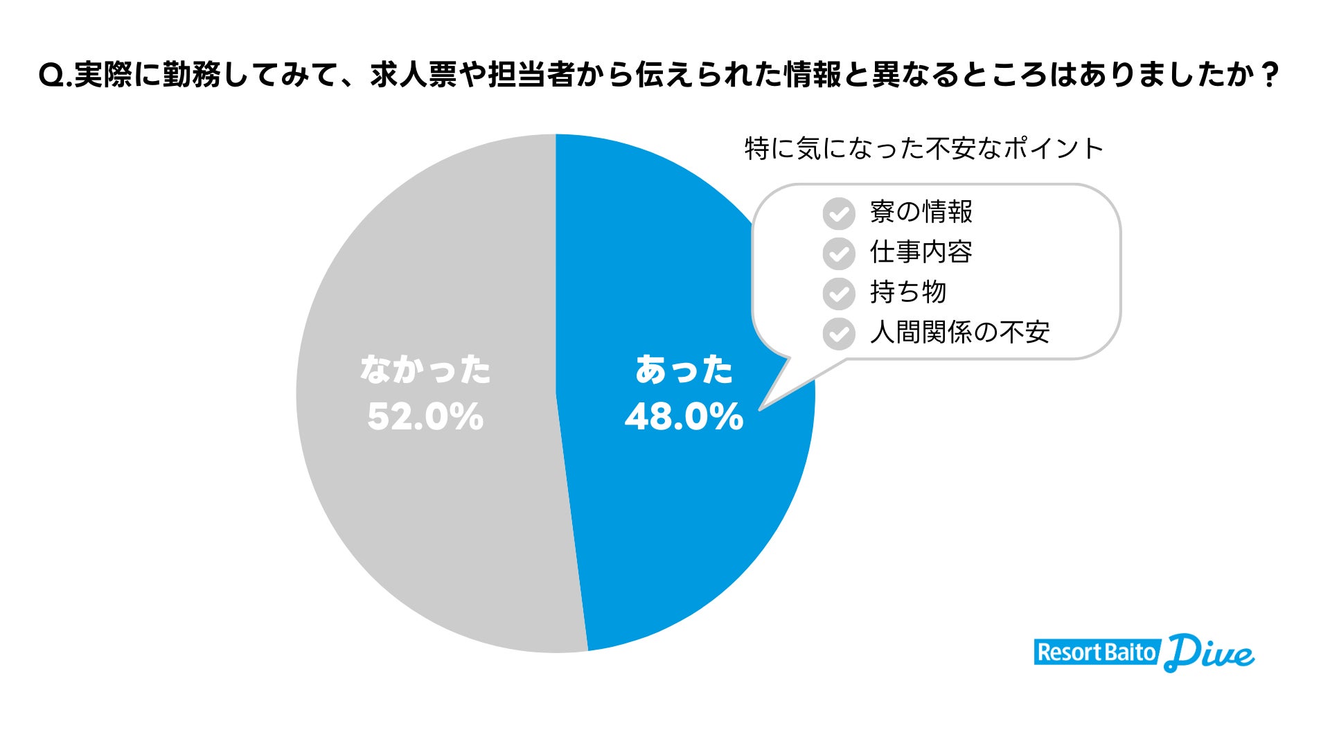 当社では実際にリゾートバイト*1を経験したユーザーが感じた不安や悩みを独自で調査しております。この度その調査結果から、本当に求められている情報提供を叶えるwebサイトへリニューアルを実施致しました。
