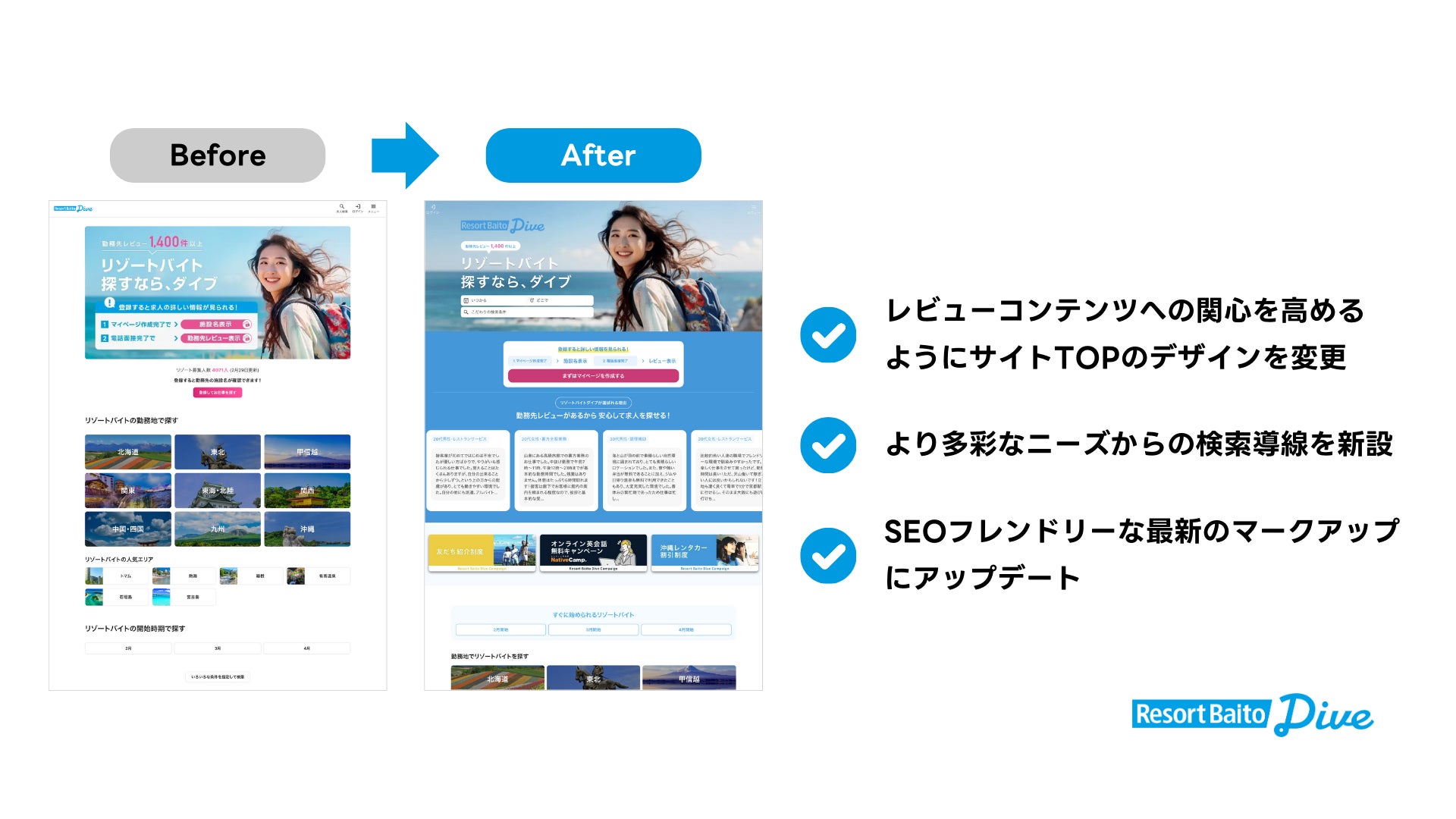 ユーザーの不安解消を叶えるサイトを目指す!リゾートバイト「ダイブ」webサイトをリニューアル
