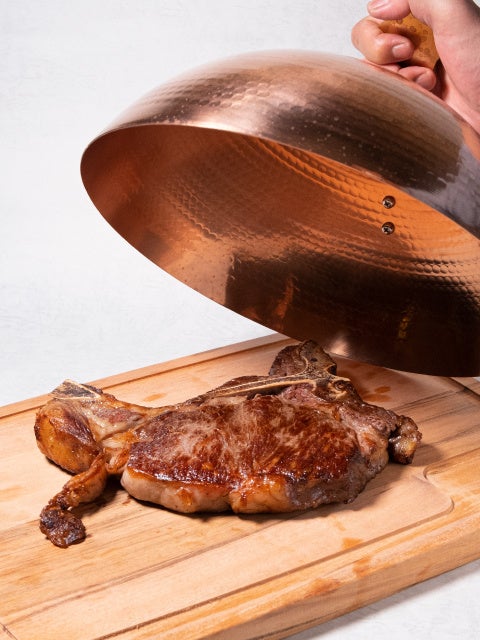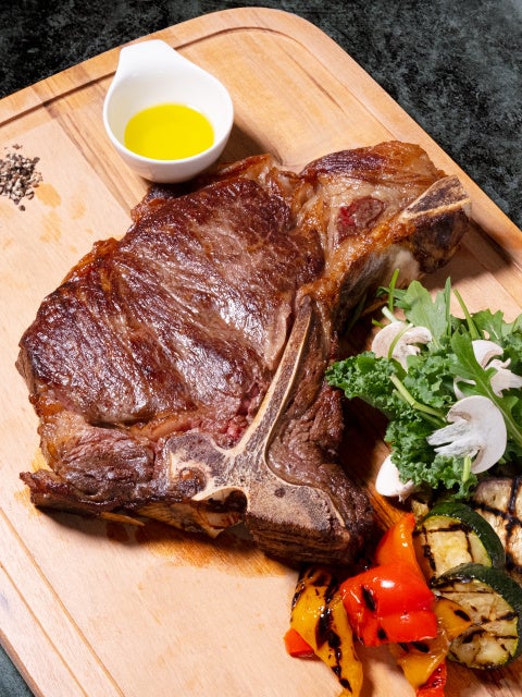 イタリア・トスカーナの名物料理「ビステッカ・アッラ・フィオレンティーナ(フィレンツェ風Tボーンステーキ)」。ディナータイムの「ビステッカコース」では、極上の肉厚ステーキがご堪能いただけます。前菜やパスタ、ドルチェはシェフのスペシャルセレクトをご提供いたします。こちらのコースは事前のご予約が必要となり2名様より承っております。