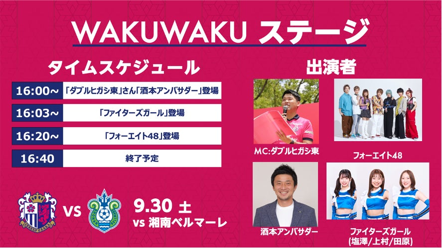 【セレッソ大阪】9/30(土)湘南戦 スタジアム場外WAKUWAKUステージにフォーエイト48、ファイターズガール登場!