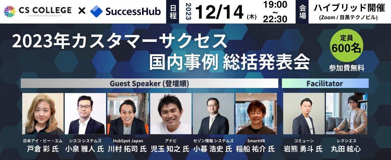 SuccessHub、CSカレッジと「2023年カスタマーサクセス国内事例 統括発表会」を12/14(木)に共同開催