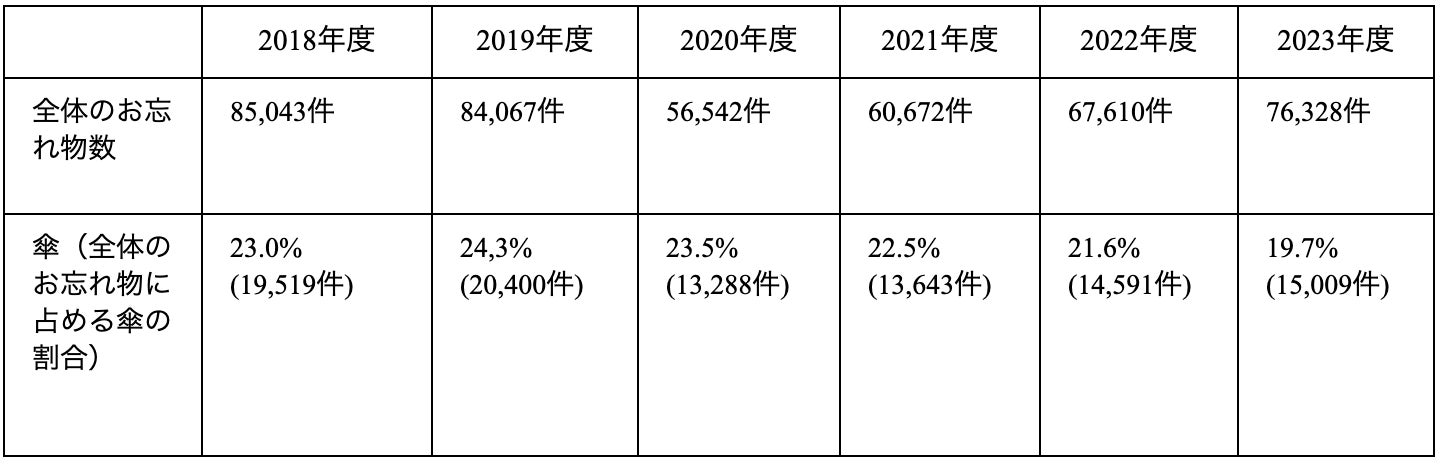 ■2023年度の「傘のお忘れ物」は、全体の19.7%