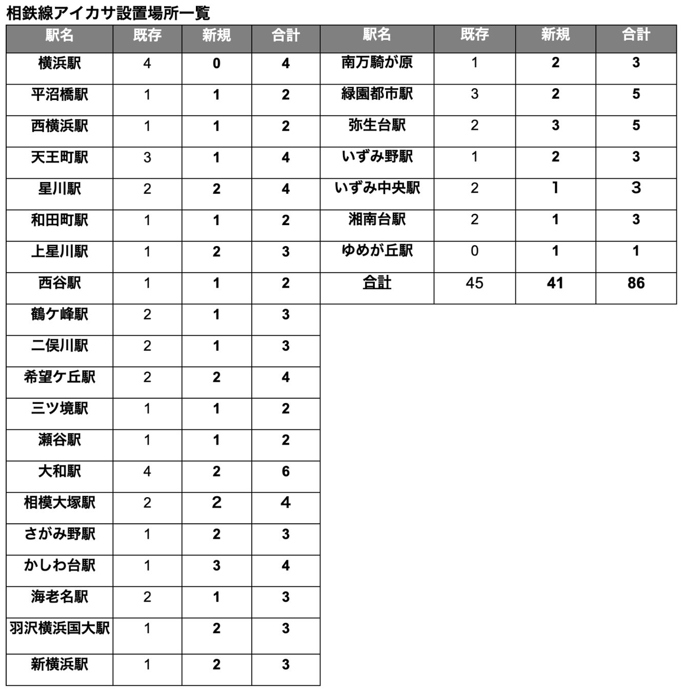 相模鉄道は、2022年11月に相鉄線の駅にアイカサの設置を開始し現在45か所に設置をしておりますが、エコに対する意識の高まりや近年頻発している局地的な集中豪雨の発生などを受けアイカサの利用機会が増加したことから、この度さらに41か所を増設し、合計で86か所に設置することといたしました。