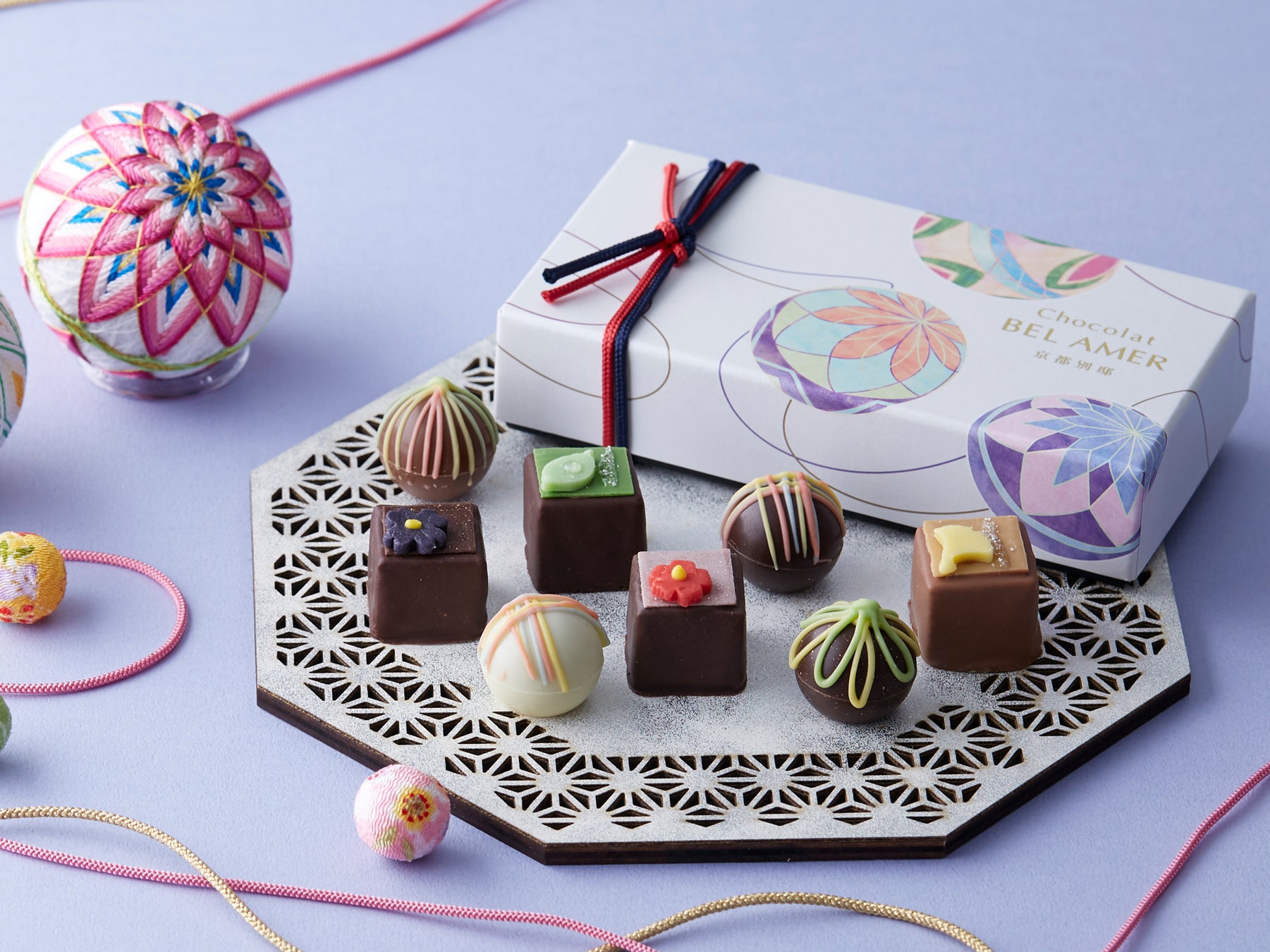 毬の柄をイメージしたラインをひとつひとつ手作業で仕上げるこだわりのショコラです。