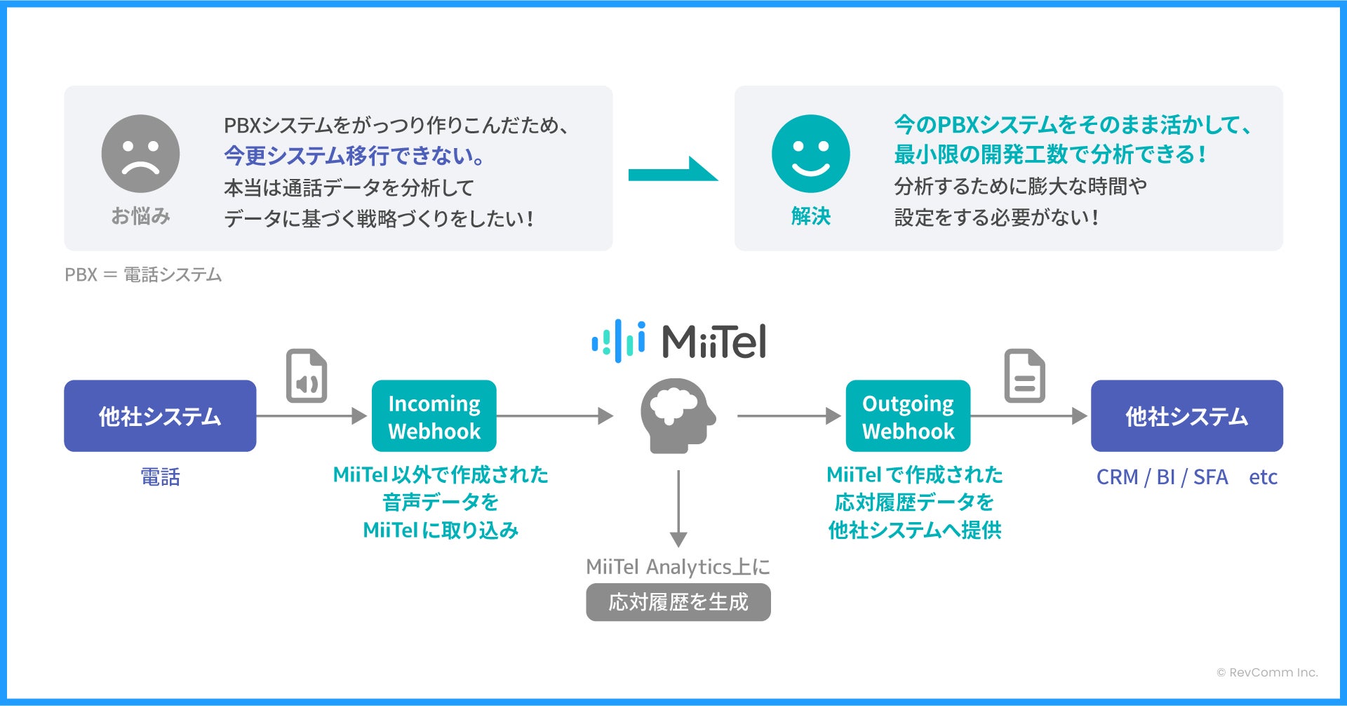 あらゆる電話システムのデータを「MiiTel Analytics」プラットフォームで解析し、各社システムで管理可能に