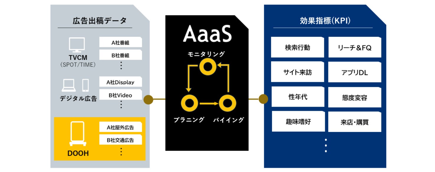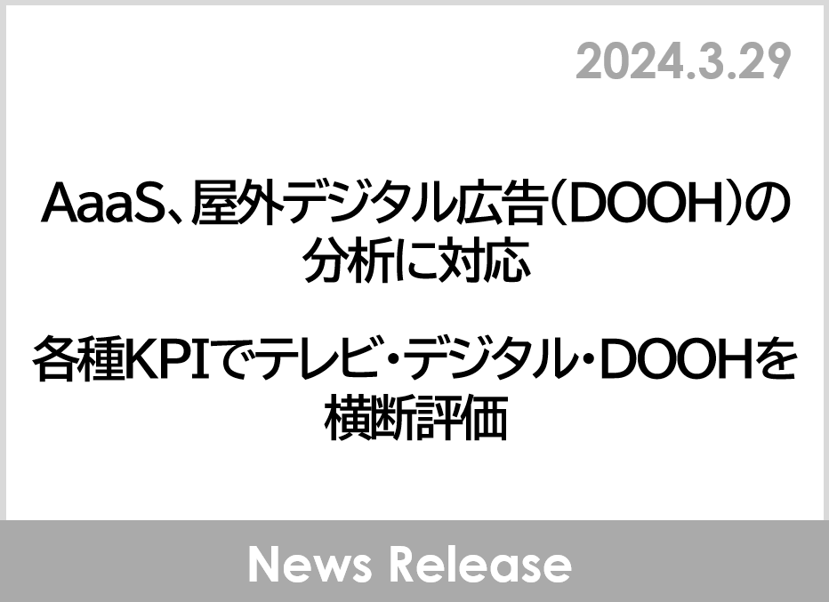 AaaS、屋外デジタル広告(DOOH)の分析に対応各種KPIでテレビ・デジタル・DOOHを横断評価