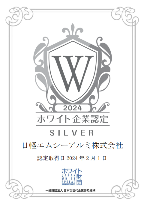 日軽エムシーアルミ株式会社様が、一般財団法人日本次世代企業普及機構(通称:ホワイト財団)が運営する「ホワイト企業認定 シルバーランク」を取得しましたことをお知らせいたします。