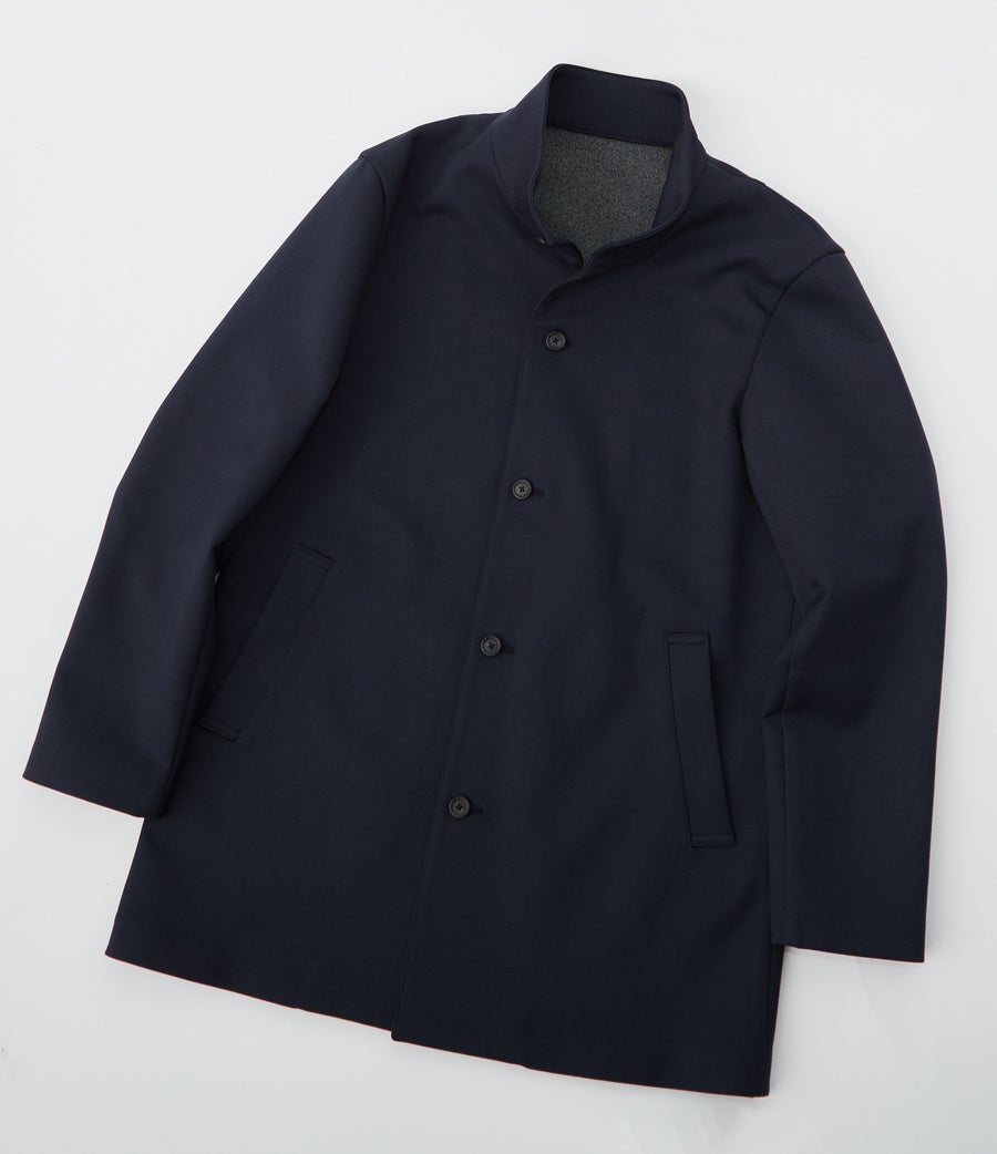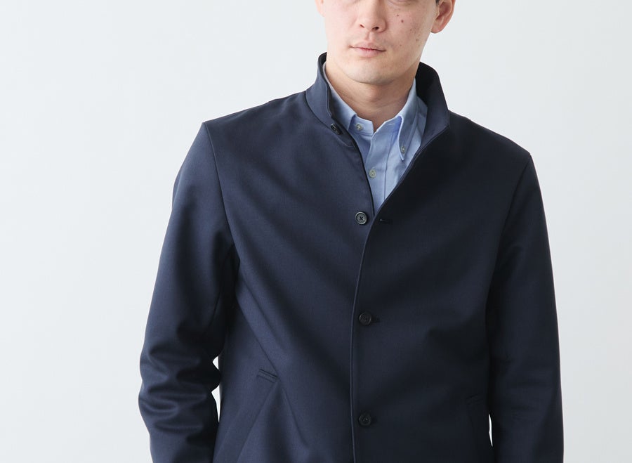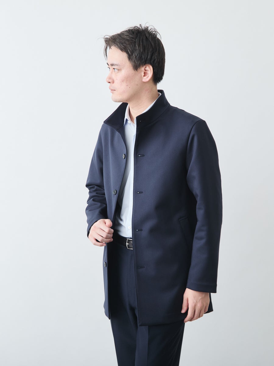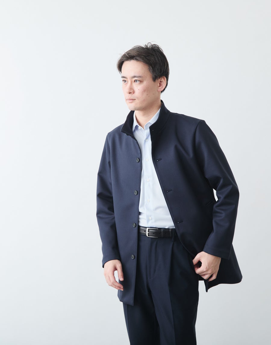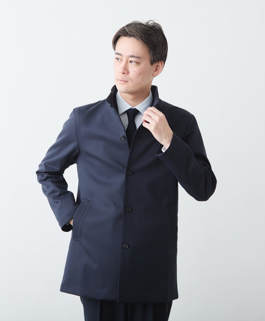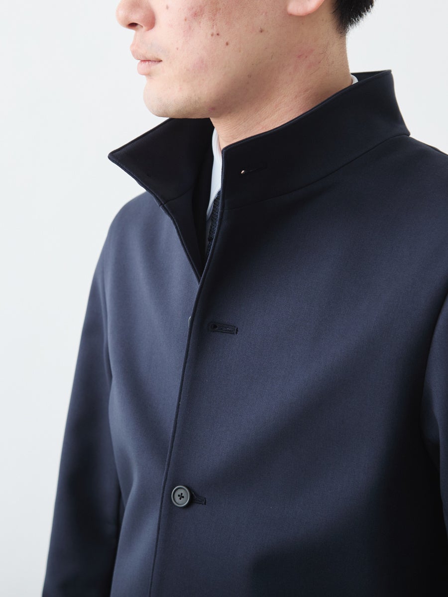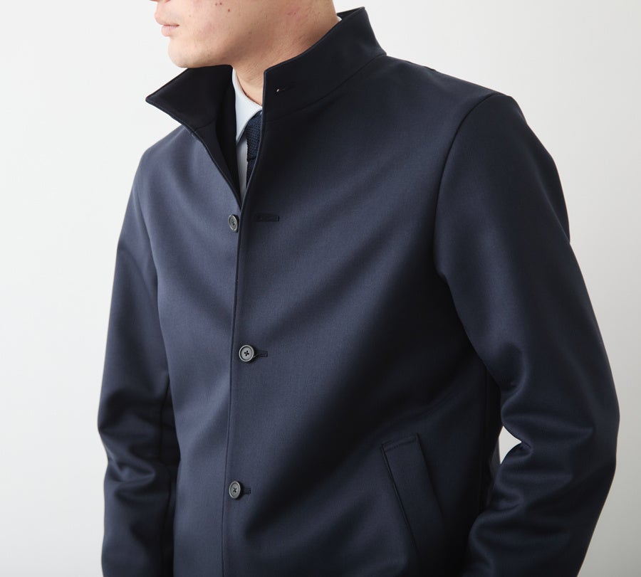 18世紀のヨーロッパの軍服が起源と言われる「スタンドカラー=立ち襟」を、現代の最新素材、ディティールで仕上げた「ニュークラシック」な3シーズン対応ショートコート。