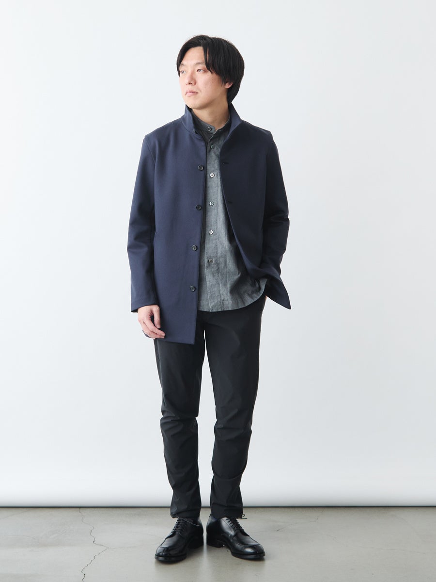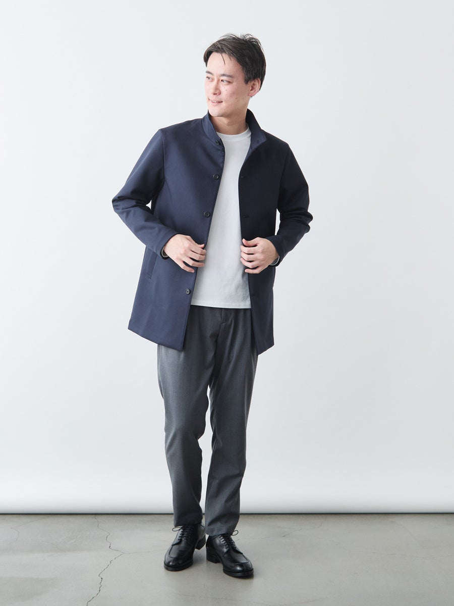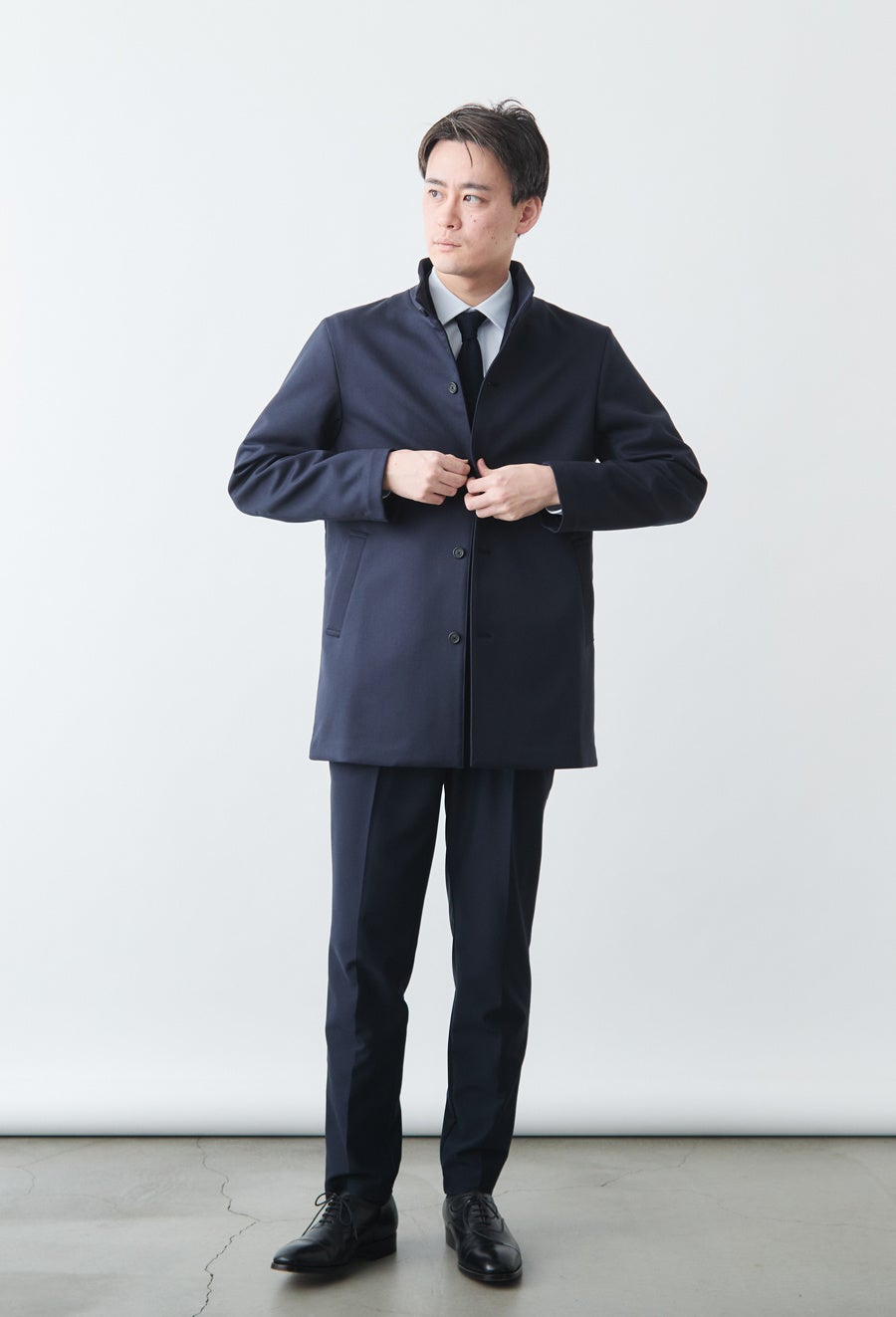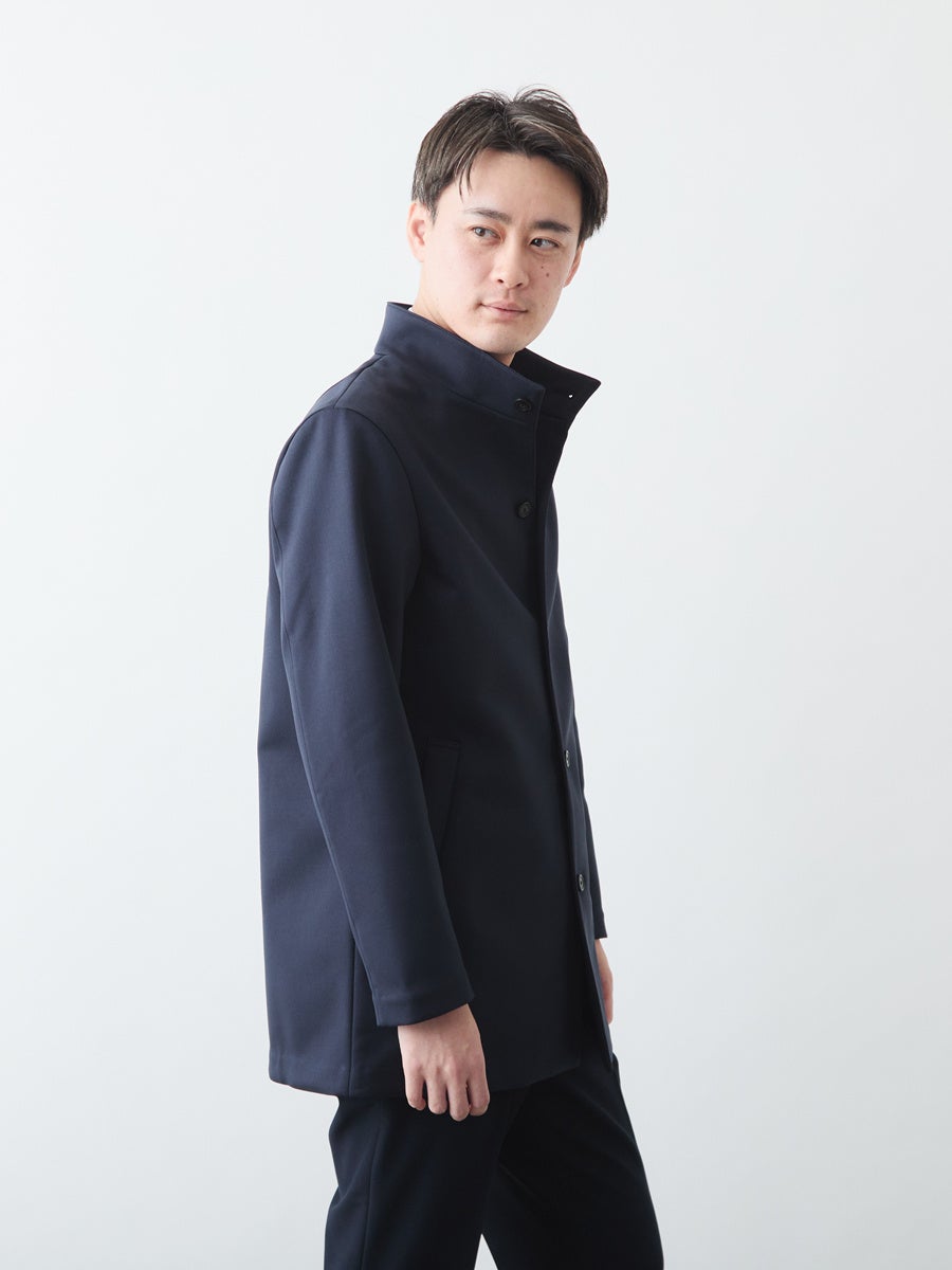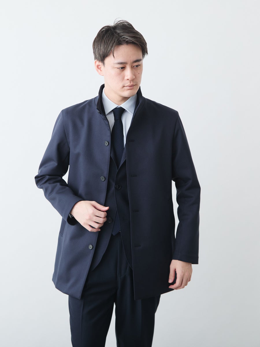 18世紀のヨーロッパの軍服が起源と言われる「スタンドカラー=立ち襟」を、現代の最新素材、ディティールで仕上げた「ニュークラシック」な3シーズン対応ショートコート。