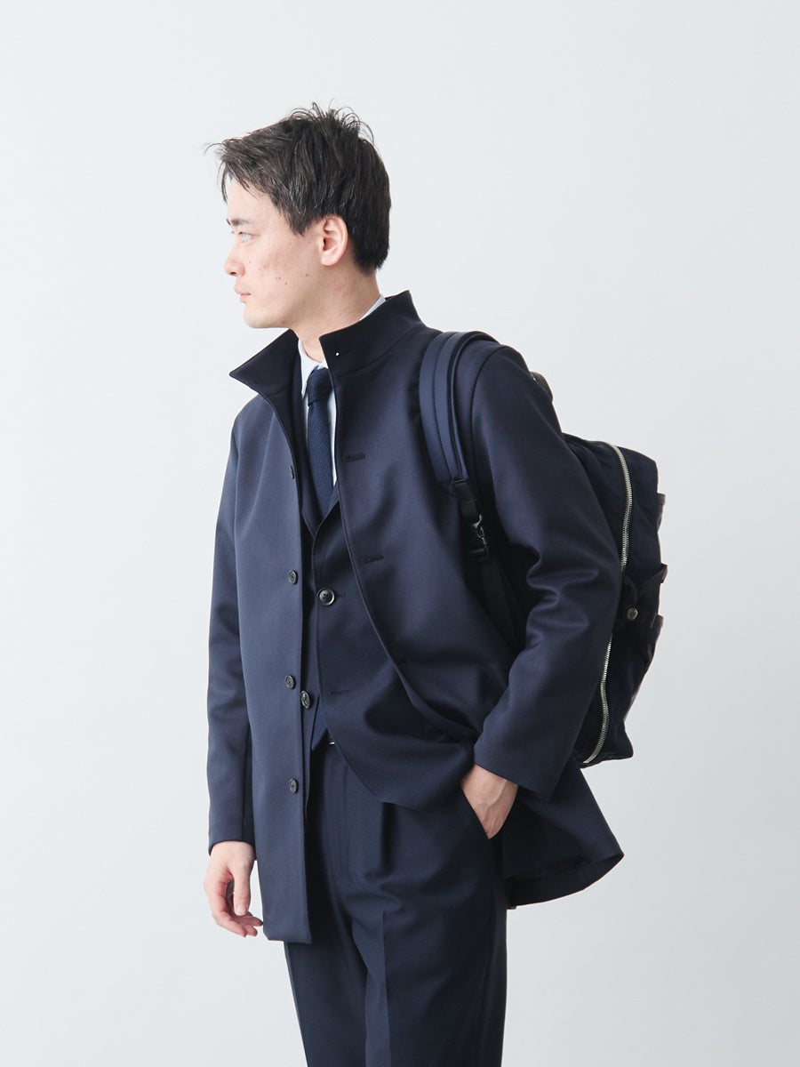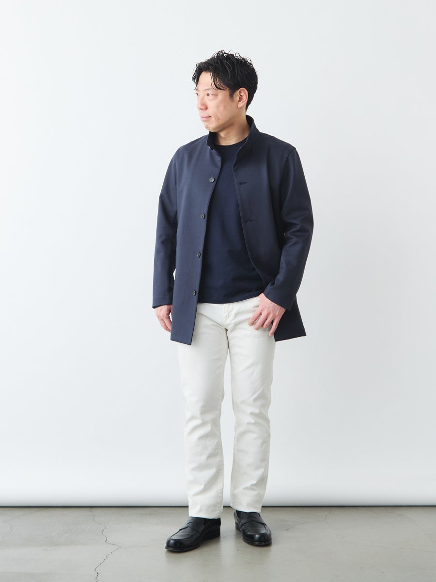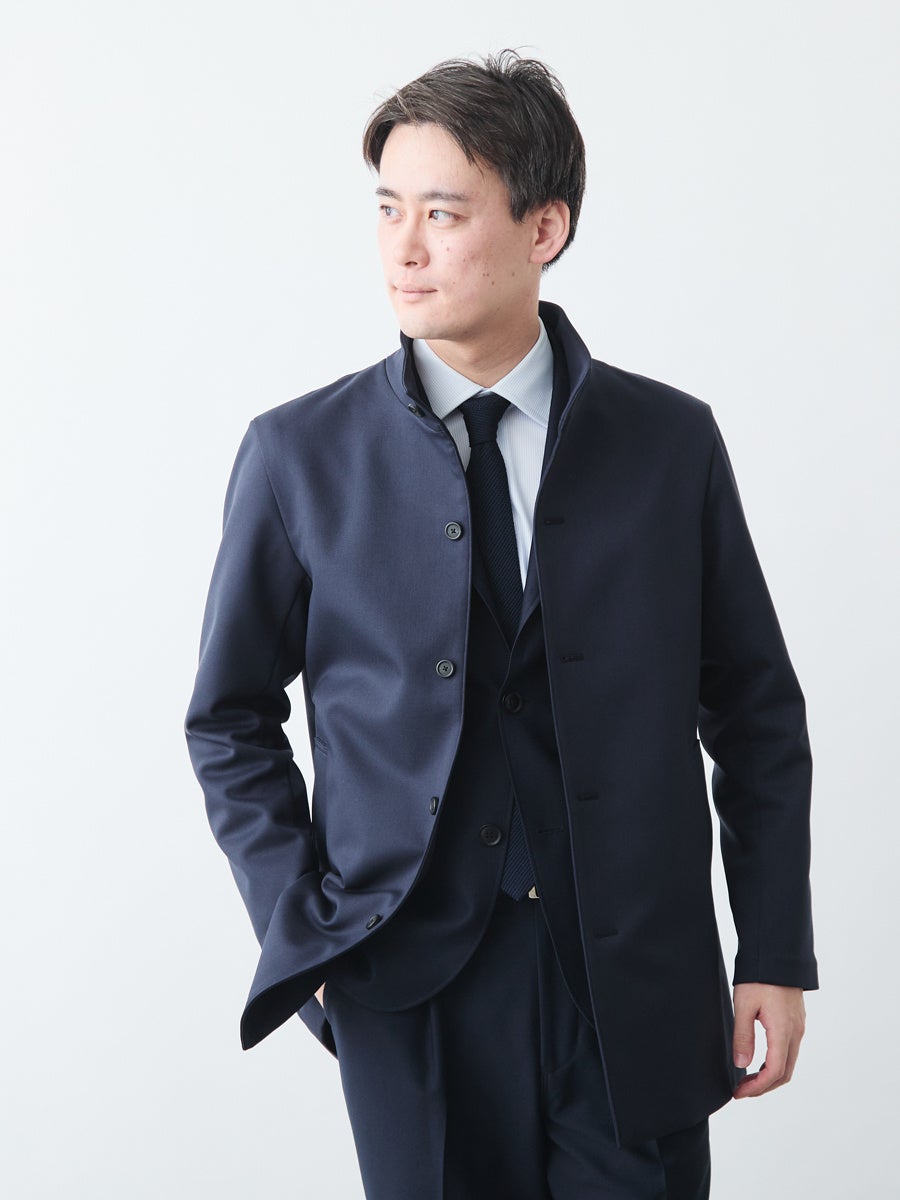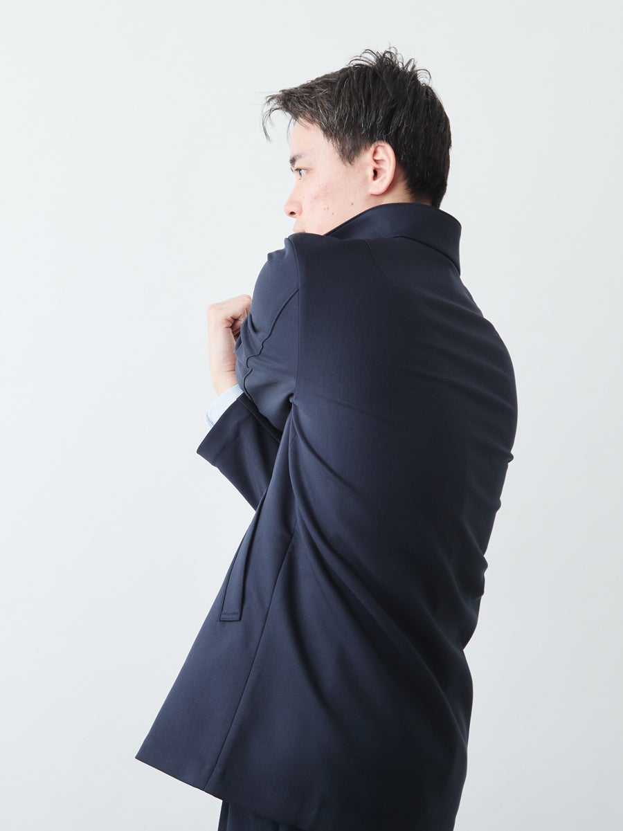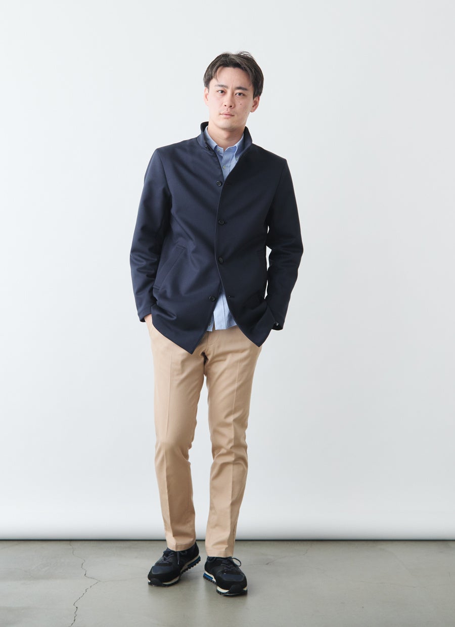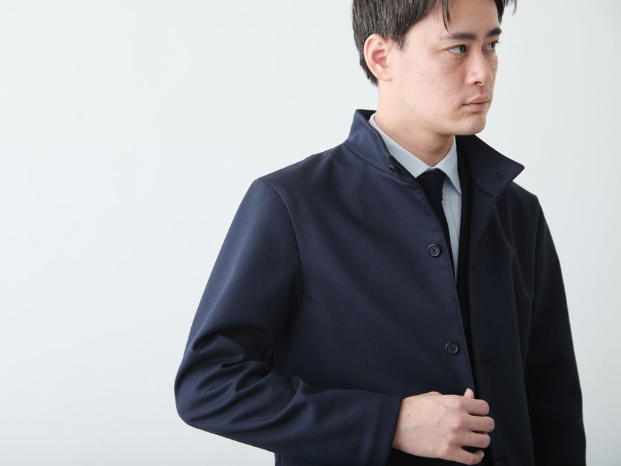18世紀のヨーロッパの軍服が起源と言われる「スタンドカラー=立ち襟」を、現代の最新素材、ディティールで仕上げた「ニュークラシック」な3シーズン対応ショートコート。