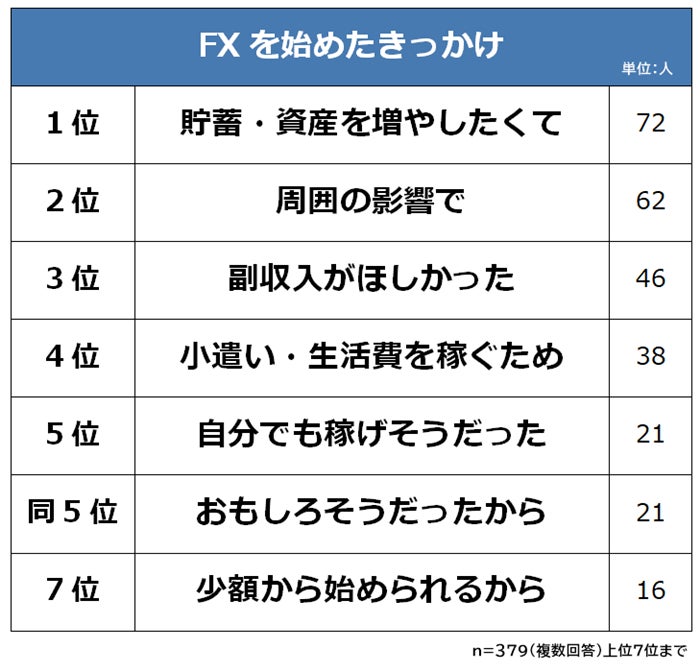 【FXを始めた理由ランキング】男女379人アンケート調査