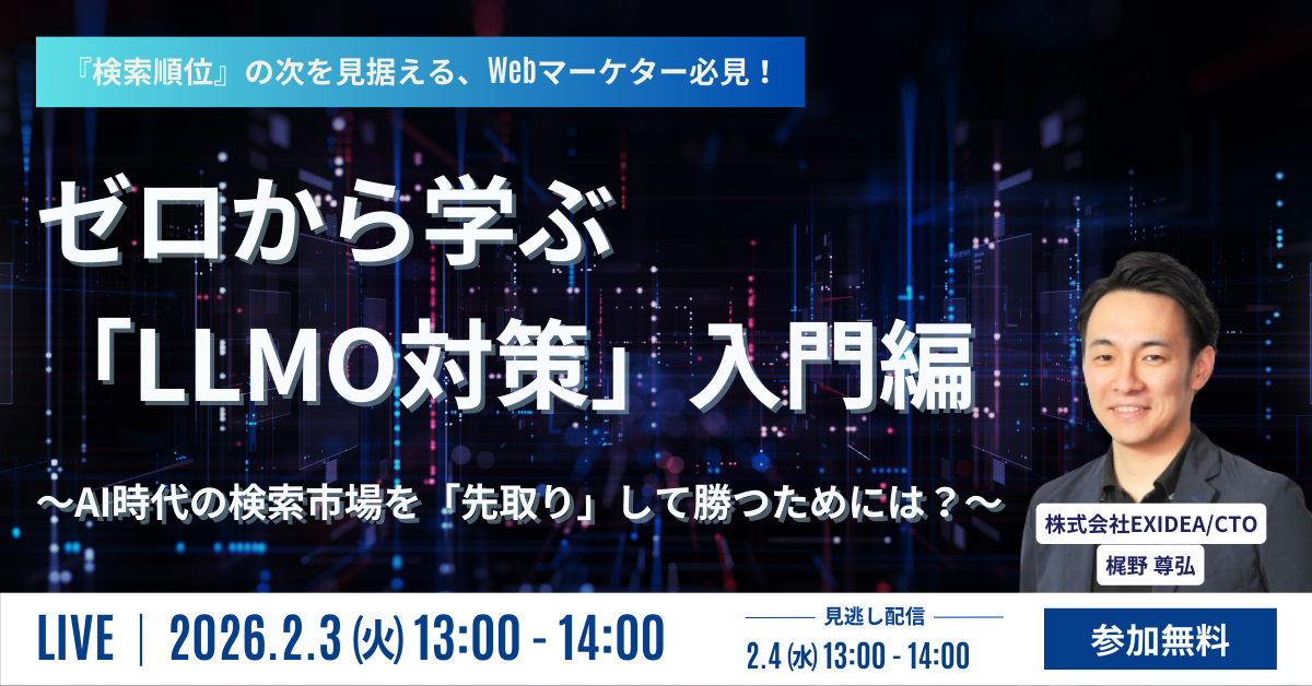【2/3 開催】検索の未来は「LLMO(大規模言語モデル最適化)」へ。EXIDEA、初心者の方にもわかりやすくLLMO対策の進め方をお届けするセミナーを開催。