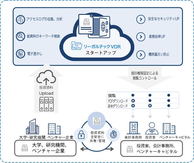 「リーガルテックVDR(Virtual Data Room)スタートアップ」を使用することで、スタートアップが投資を受ける際のデータ共有における多くの課題を解決することができます。以下に、その主な利点を挙げます。