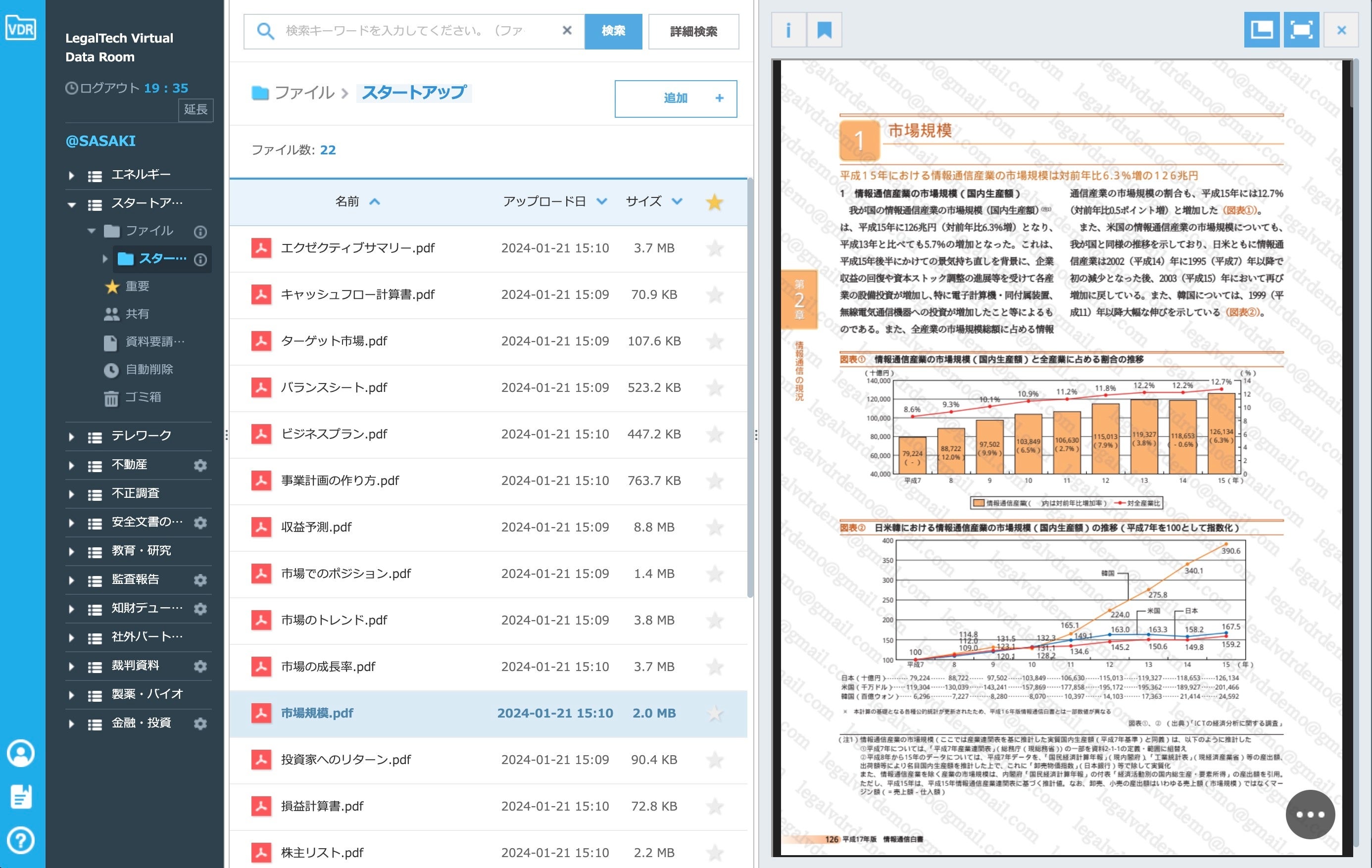 「リーガルテックVDR スタートアップ」を利用することで、データのアップロード、整理、共有が容易になります。これにより、投資家との間で迅速かつ効果的なコミュニケーションが可能になります。