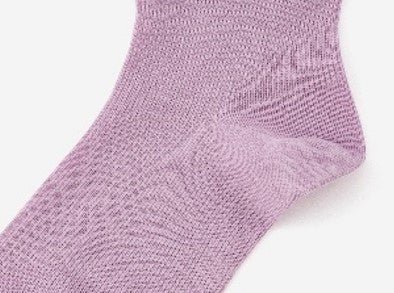 すべすべとなめらかなシルク混のナイロン素材で、かかとの成型編みが無いデザインなので、かかとの位置を気にせずするんと履けます。