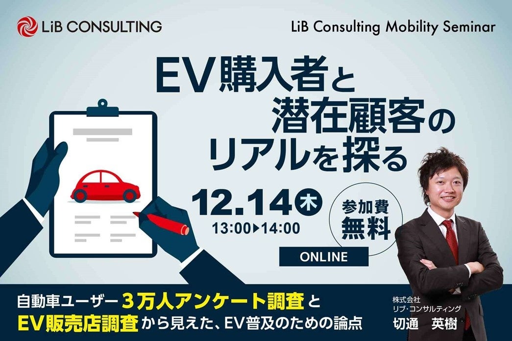 リブ・コンサルティング、「EV購入者と潜在顧客のリアルを探る」~自動車ユーザー3万人アンケート調査とEV販売店調査から見えた、EV普及のための論点~セミナー開催!