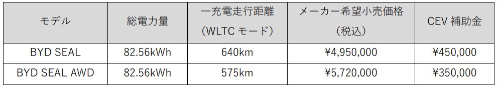 新価格は、BYD SEAL RWDが495万円、BYD SEAL AWDが572万円(税込み)