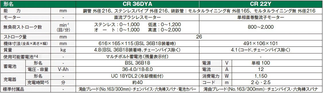 ■AC電源モデルのパイプソー CR22Yも同時発売