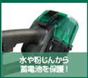 切断時に発生する水、粉じんや衝撃からバッテリーを守るカバーがついています。