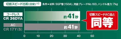 当社従来製品であるAC品 CR17Y(S)と同等の切断スピードです。