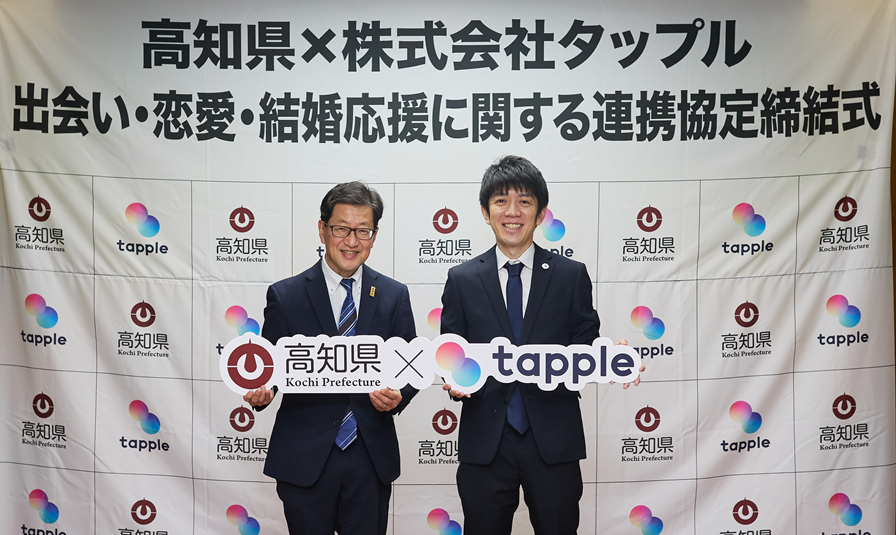 株式会社タップル(本社:東京都渋谷区、代表取締役社長:平松繁和)は、運営するマッチングアプリ「タップル」において、結婚を希望する人の多様なニーズに応じた出会い・結婚支援に取り組むことを目的に、高知県と「出会い・恋愛・結婚応援に関する連携協定」を2025年12月25日(木)に締結いたしました。
