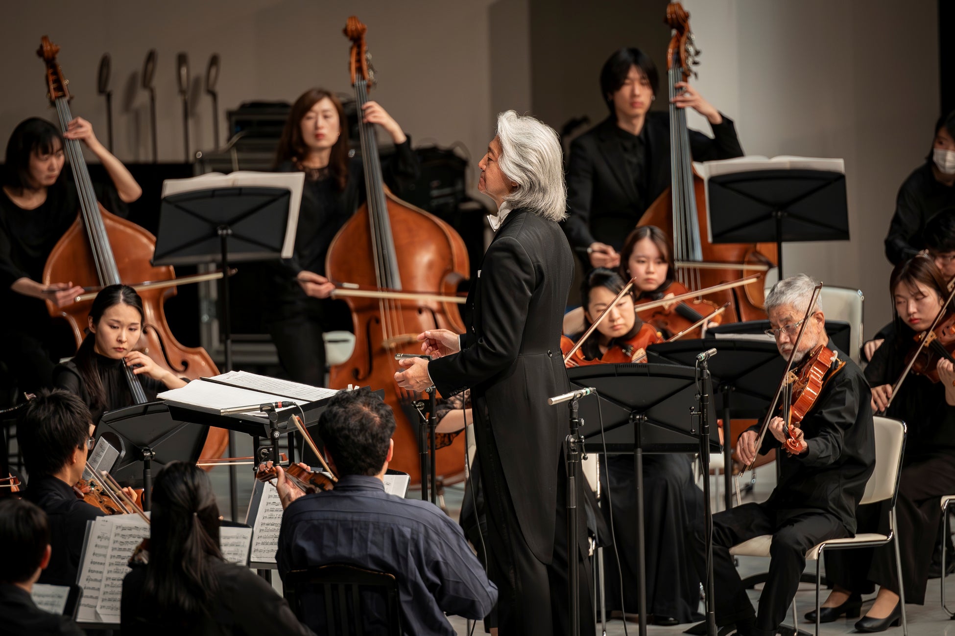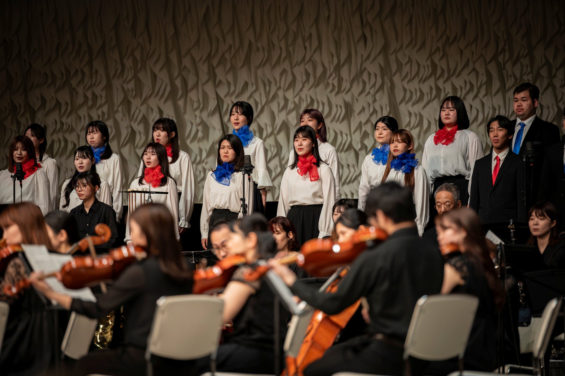 ステージ後半では、演奏学科の学生を中心とする大阪芸術大学管弦楽団が登場。国際的なマエストロとして活躍し演奏学科教授も務める大友直人先生の指揮で、日本の新旧の魅力を伝える様々なジャンルの音楽を繰り広げました。