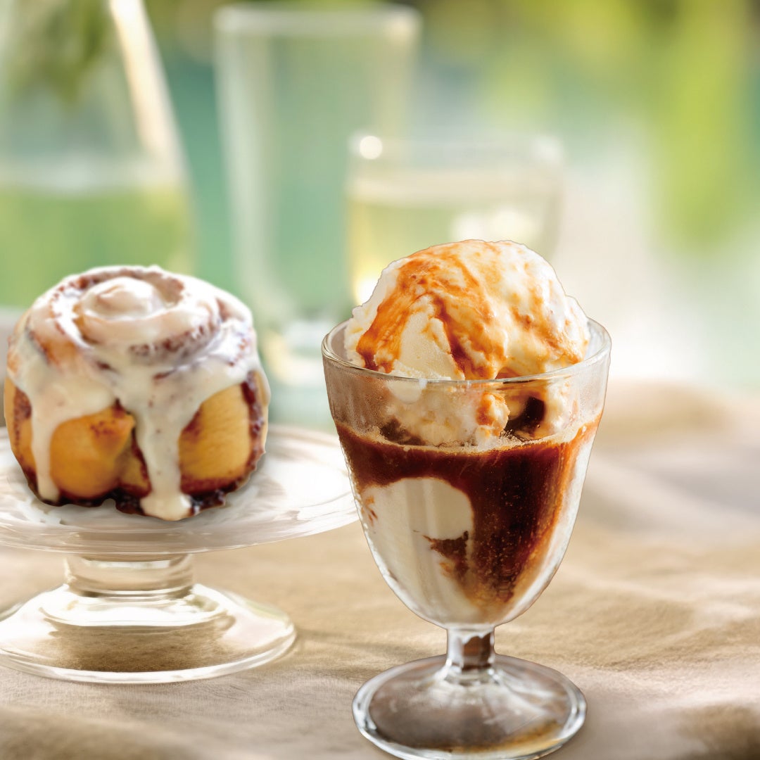さらに、ひんやり冷たいバニラアイスを追加すれば、温かいロールとの絶妙な温冷コンビネーションが楽しめます。