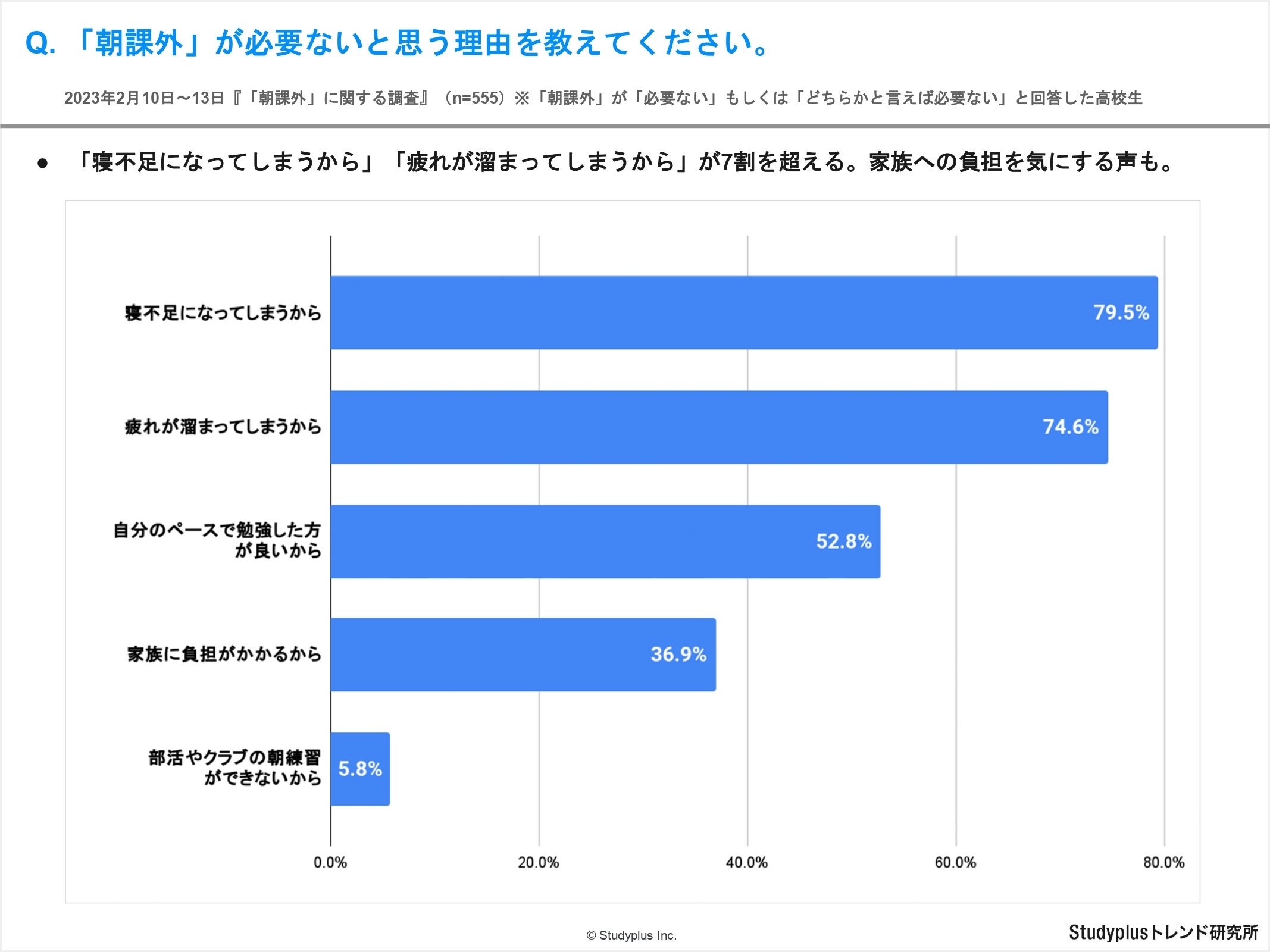 「朝課外」実施時の生徒の起床時間は約4割が朝5時台、“寝不足” “疲れ” “家族への負担” を理由に7割以上が「朝課外」は不要と回答~九州地方の学校に通う高校生762名に「朝課外」に関する調査を実施~