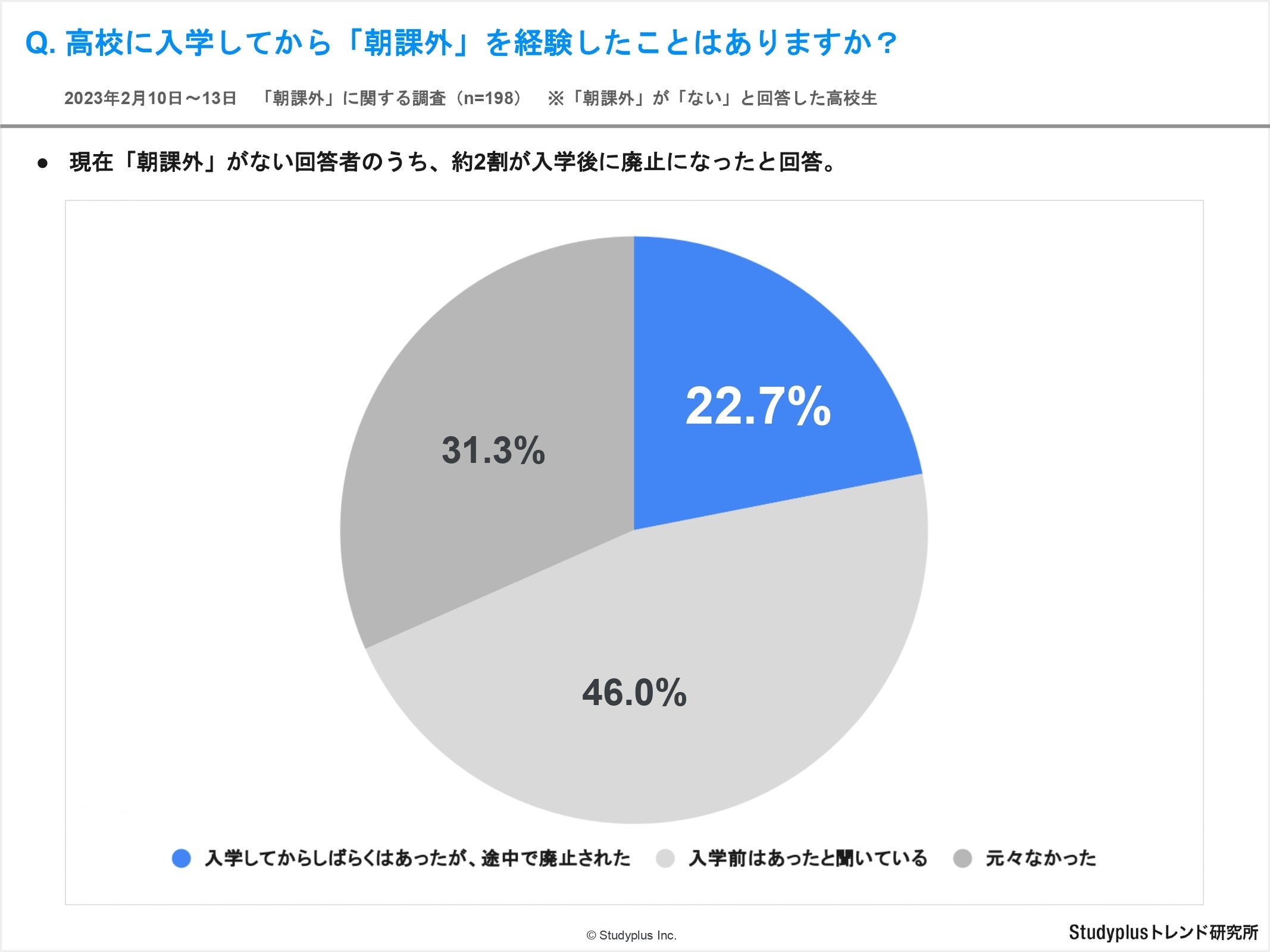 ・入学後に「朝課外」が廃止された割合は、全体の約2割。