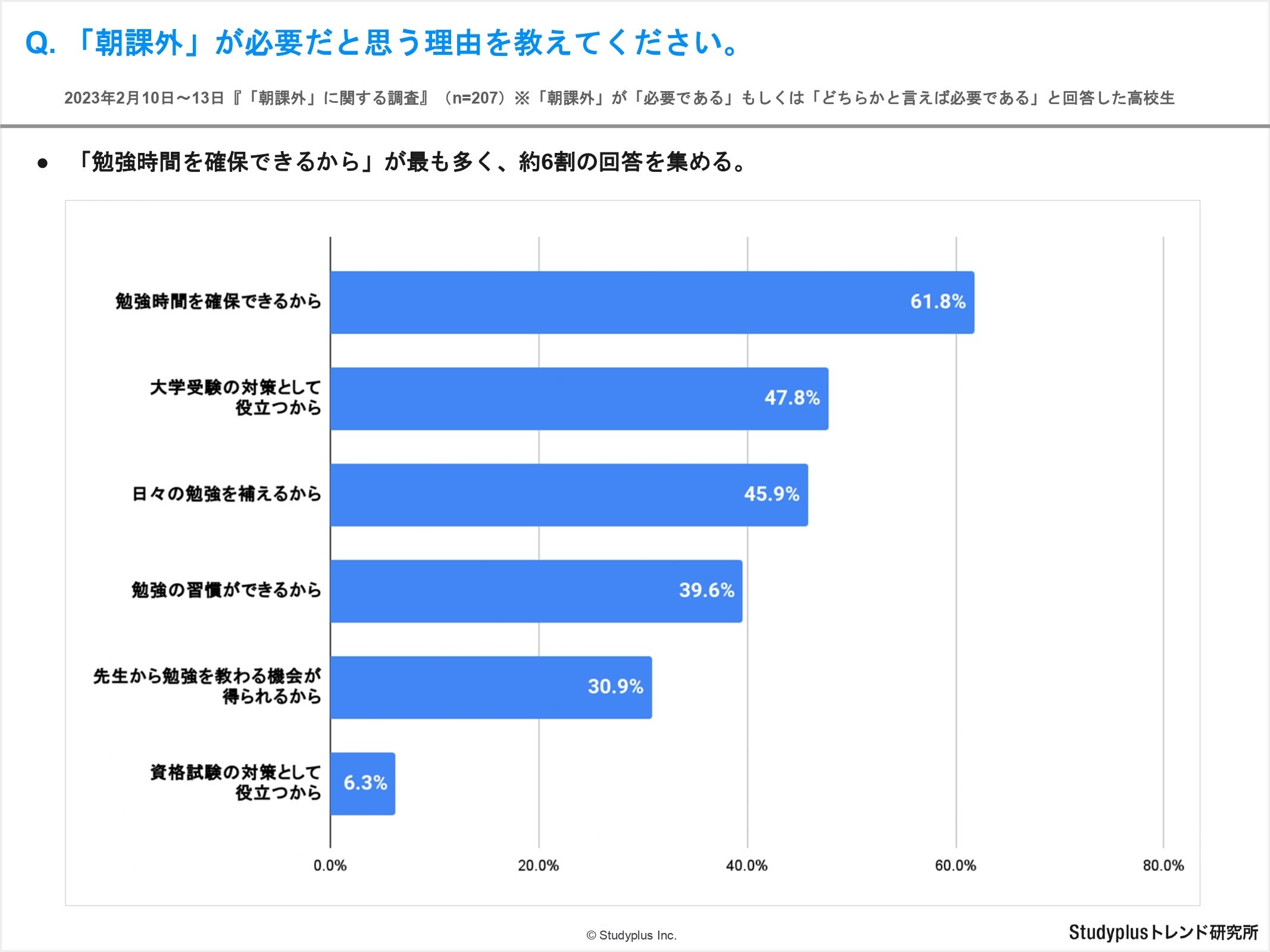 ・「勉強時間を確保できるから」が最も多く、約6割の回答を集める。