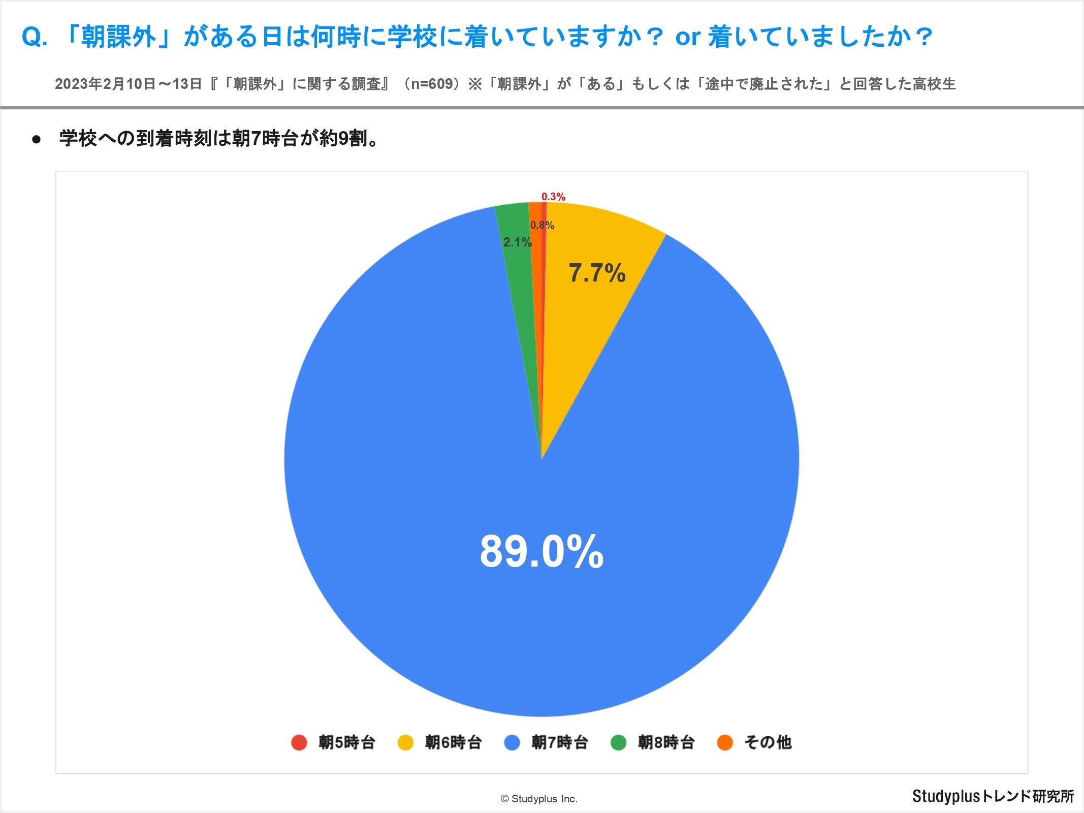 ・学校への到着時刻は約9割が朝7時台。朝5時台、朝6時台の回答もあり。