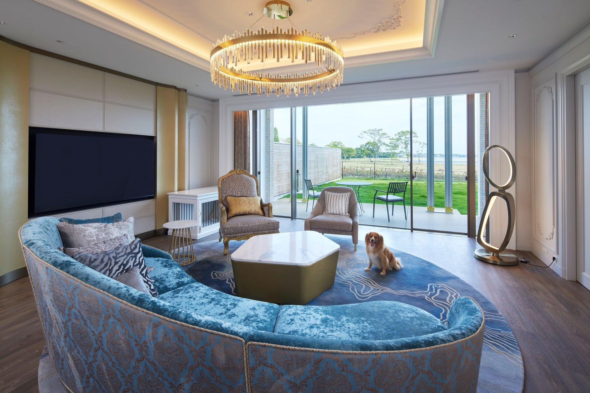 大切な家族の一員である愛犬との旅行を気兼ねなく楽しみたいというニーズに応え、客室1号棟は29室すべてが愛犬同伴可能ルームで中型犬※まで対応しております。一部客室には専用庭を備え、敷地内には当社西日本エリア初の広大なドッグランを設置。かけがえのない愛犬との旅行とラグジュアリーなホテルステイが実現します。※体重30㎏未満まで