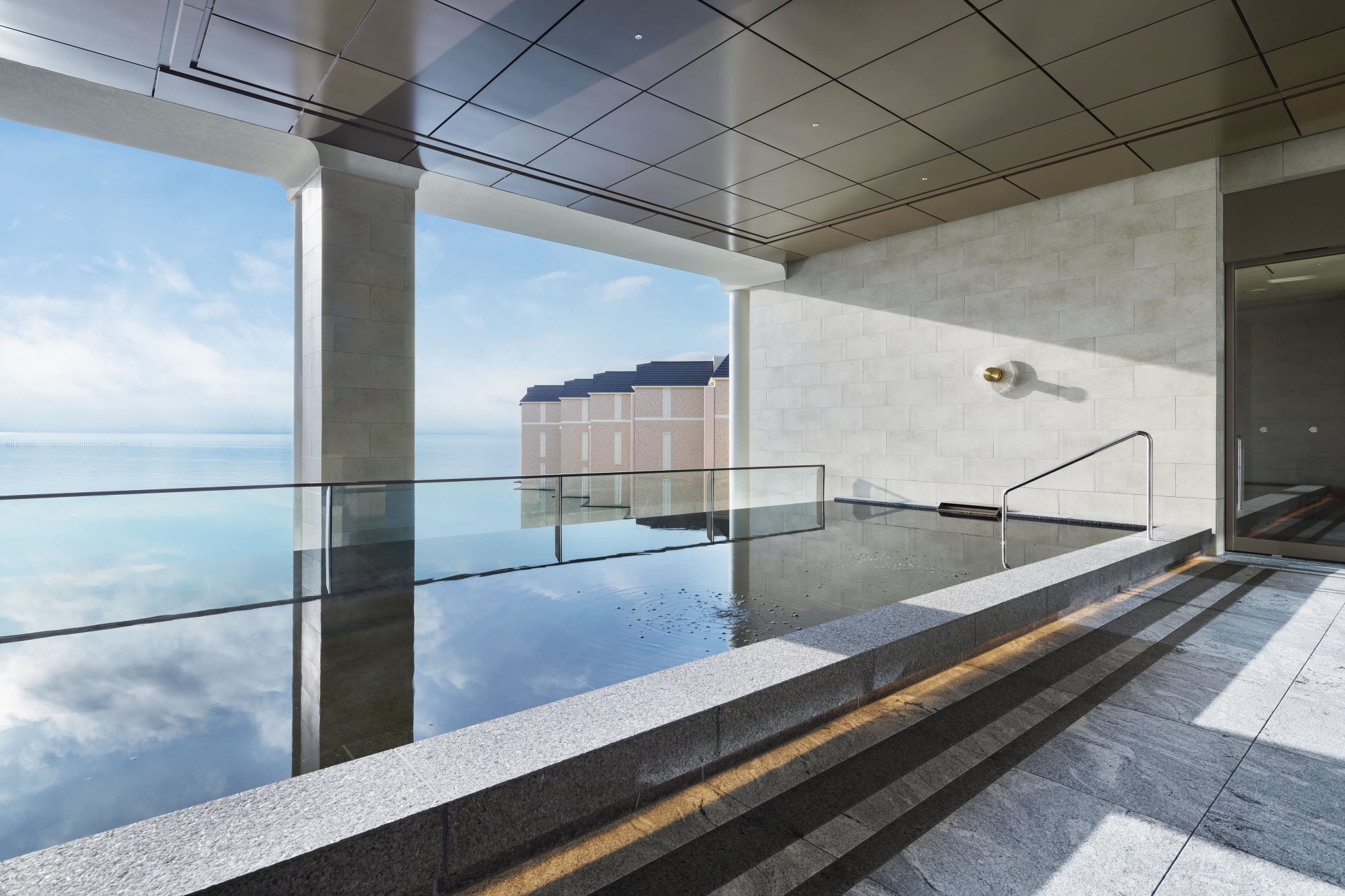 温泉が引かれた露天風呂や内風呂の他、蒸気式サウナやスチームサウナ、炭酸泉風呂などスパ施設が充実。露天風呂は、琵琶湖の自然の雄大さと四季折々の風景を堪能できる開放的なインフィニティバスやくつろぎスペースをご用意しております。