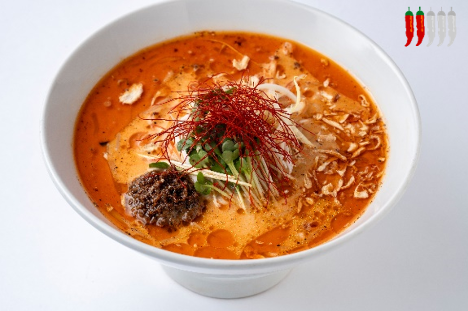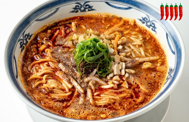 麻辣のストレートな辛味とキレ、胡麻の香りが引き立つ正宗式坦々麺に、自家製のラー油とその日に挽いた花椒をたっぷり入れて仕上げた超激辛の一杯です。麺によく絡むこってりとしたスープを飲む度に、ジリジリとした痺れと強烈な辛さが口の中を次々と襲います。