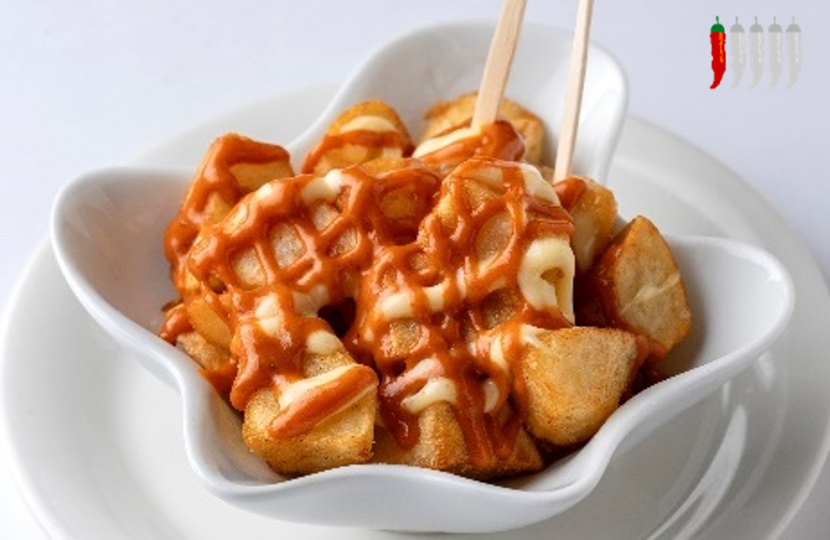 フライドポテトの上に、ピリッと辛いサルサブラバと自家製アリオリソースをかけた一品です。スペインではタパスの女王と言われ、ビールやワインなどのおつまみとして大人気!ポテトにひと手間加えて揚げることによって、表はサクッ、中はホクホクの食感に仕上げています。