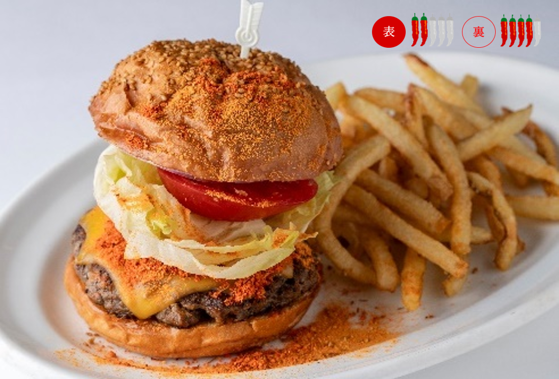 大人気のチーズバーガーを、カイエンペッパー、ブラックペッパーなど数種類のスパイスを加えて作った特製ケイジャンスパイスで激辛に変身させました。ピリリとした辛さが、ビーフとチーズの旨みをぐんと引き立てる一品です。キャロライナリーパーを加えた裏メニューは、攻撃的な辛さが口の中を襲います。