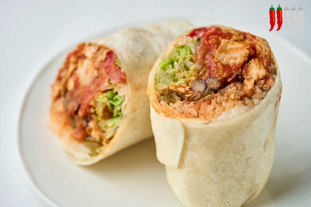 ハバネロやハラペーニョなど数種類のスパイスとトマトソースを、一番人気のグリルチキンブリトーにたっぷりトッピングしました。刺激的な辛さとトマトの酸味が調和する、夏にピッタリの一品です。チキン、ライス、ビーンズ、チーズ、レタスなど具材もたっぷり入って食べ応えも抜群!