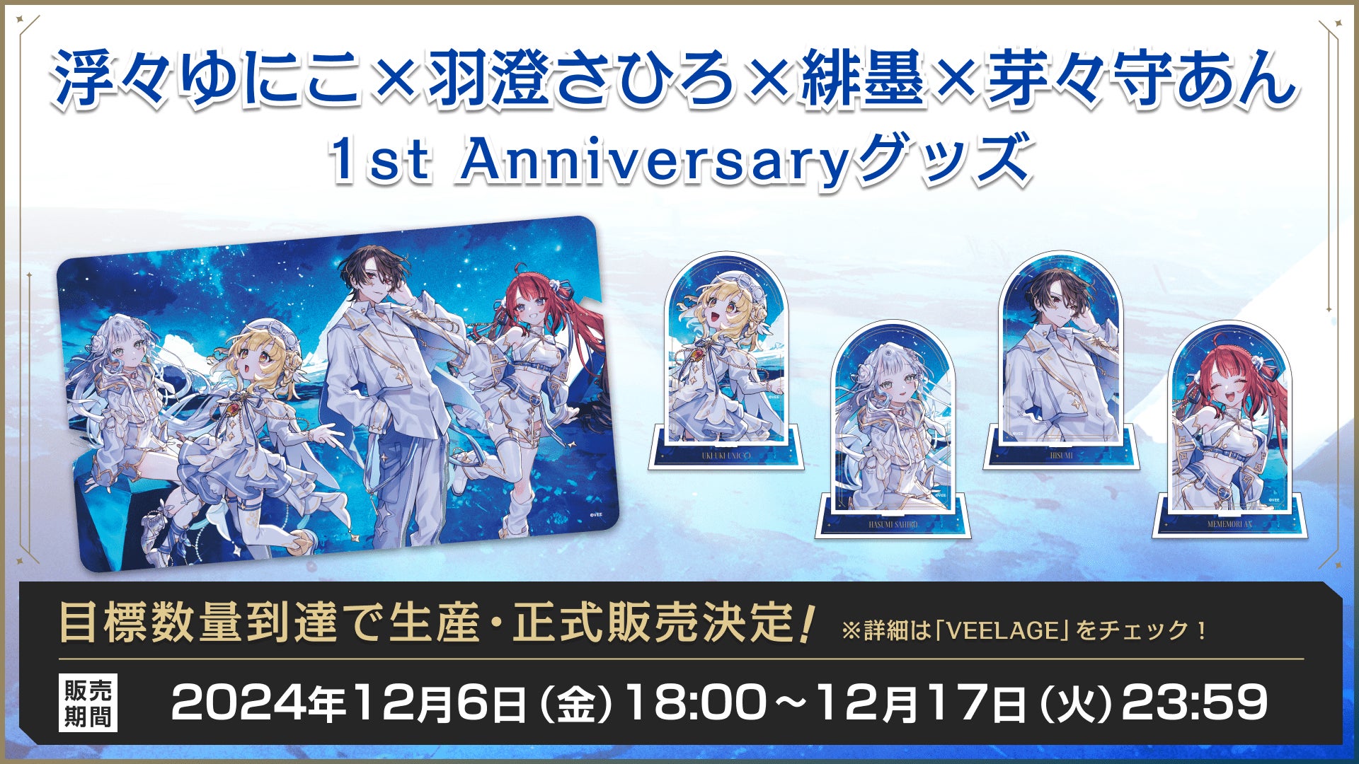 「浮々ゆにこ」「羽澄さひろ」「緋墨」「芽々守あん」1st Anniversaryグッズ第2弾