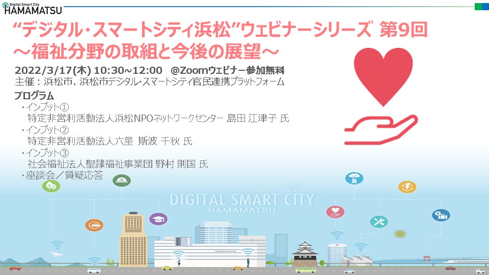 “デジタル・スマートシティ浜松”ウェビナーシリーズ 第9回~福祉分野の取組と今後の展望~を開催します!