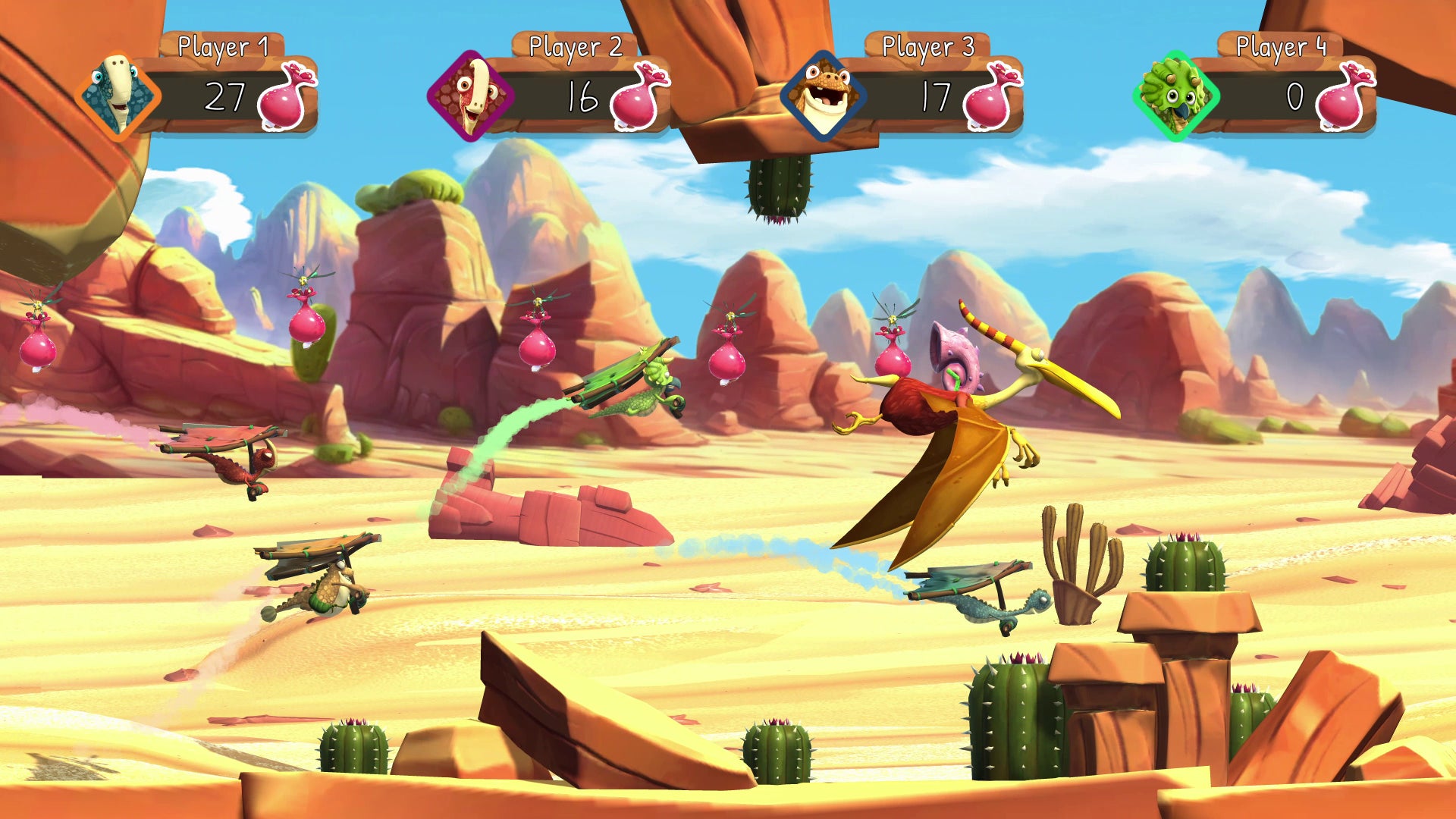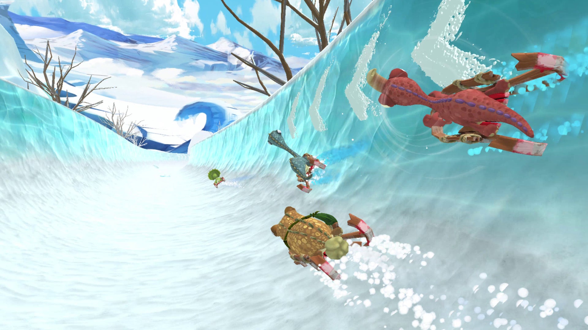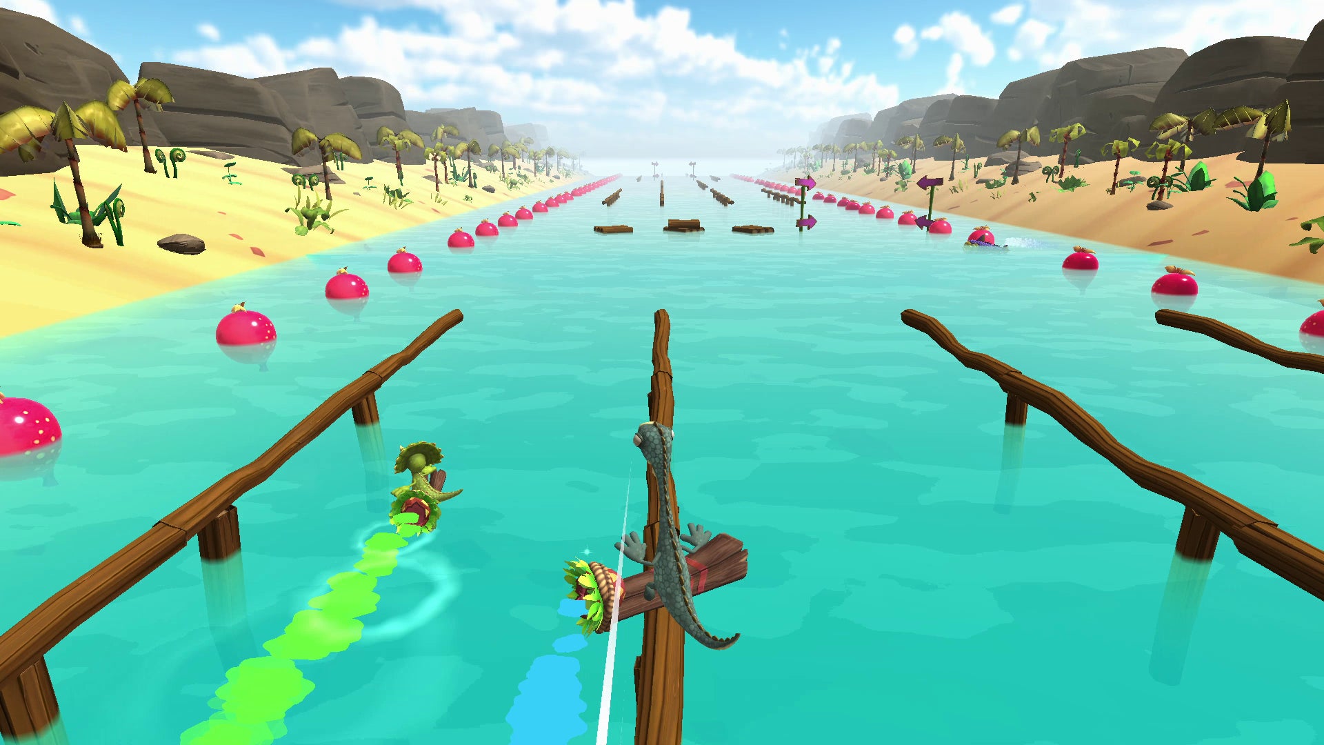 かけっこ、ボートレース、クライミングなど、「ギガントサウルス」の世界ならではの8つの競技で競争しよう!
