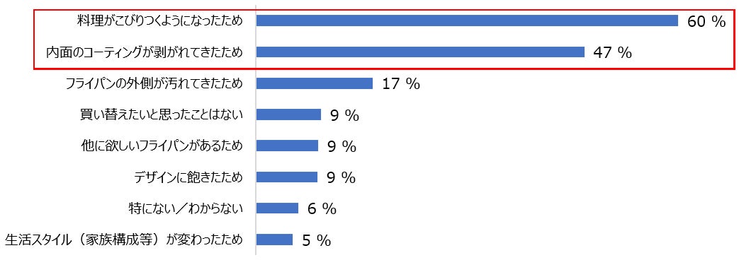 ■フライパンを買い替えるきっかけ第 1 位は「料理がこびりつきやすくなった」